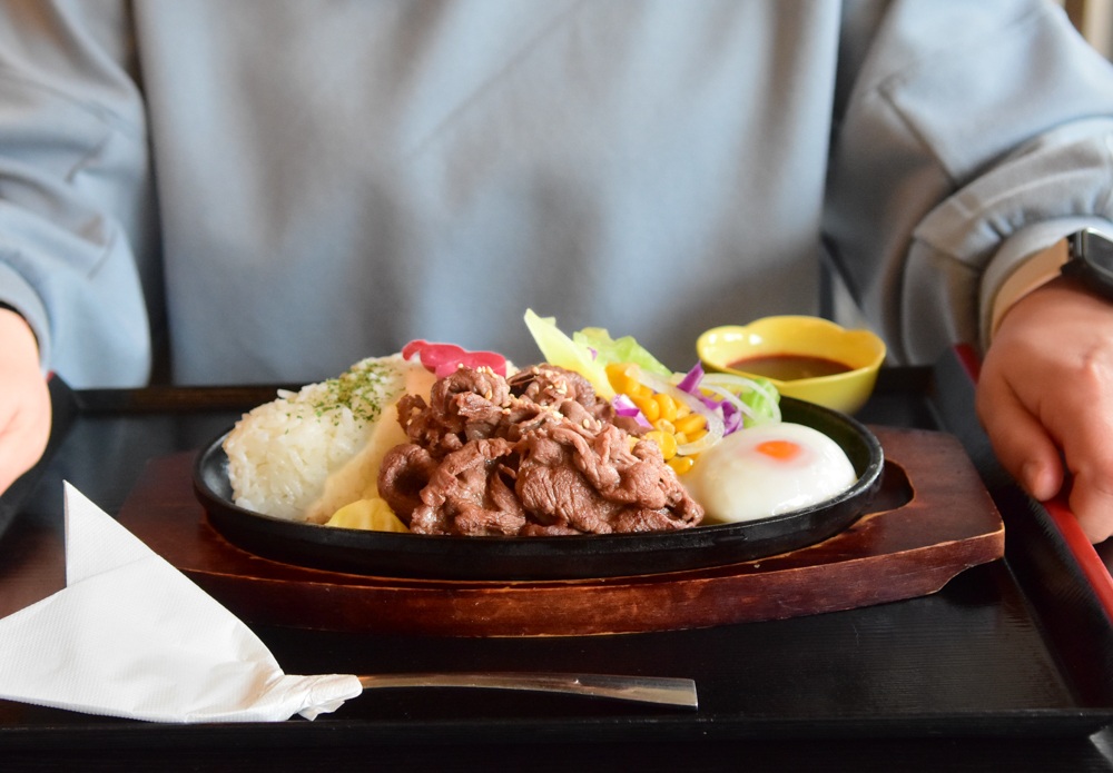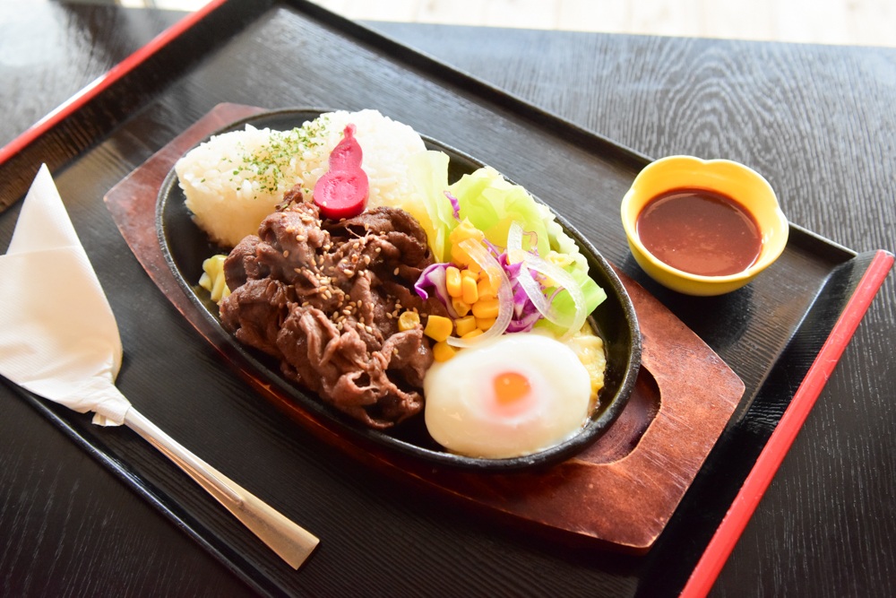 「和風ダイニング MINORI」の養老飯は熱々の鉄板の上に具材が乗せられており、ピリ辛ソースが添えられているのが特徴。お肉の旨みとソースの辛味が絶妙に絡み合い、食欲がそそられました。