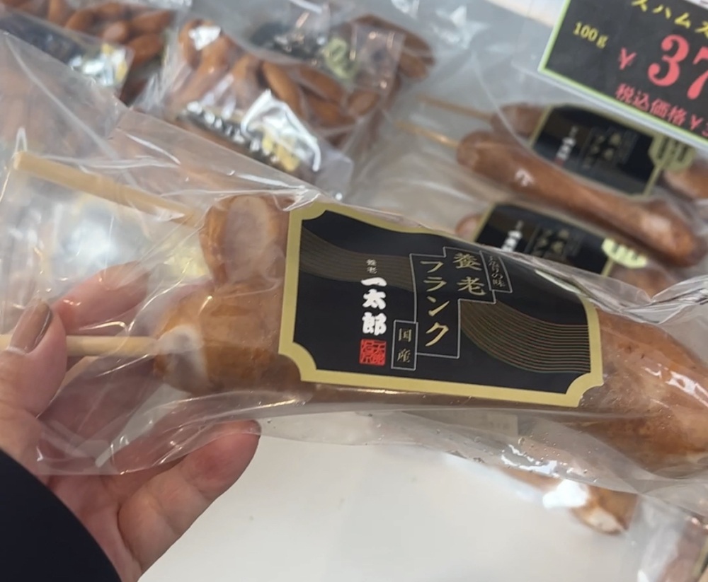 もう一軒、気になっていた「手作りハム一太郎」さんへ。ここでは、日本最大級のフランクフルト「養老フランク」を購入することができます。長さ17cm、重さ200グラムの特大サイズで食べ応えも十分です。岐阜県産豚肉100%と、養老の滝の菊水泉の清らかな水を使用し、荒挽きに仕上げているフランクフルトは、とてもジューシーな味わいが特徴です。