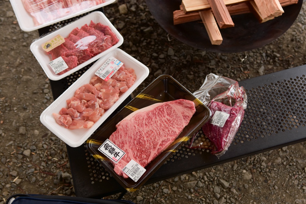 「RECAMP養老」のロッジに戻り夕飯のBBQの準備を始めます。お肉などは自分で持ち込むのももちろんOKですが、施設のオプションメニューとして飛騨牛セットや養老定番お肉セットなどを注文することもできます。