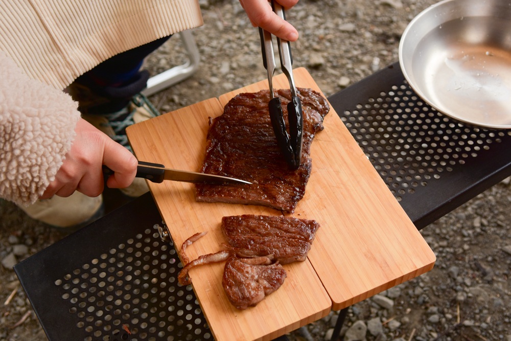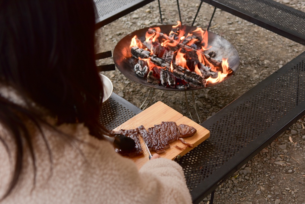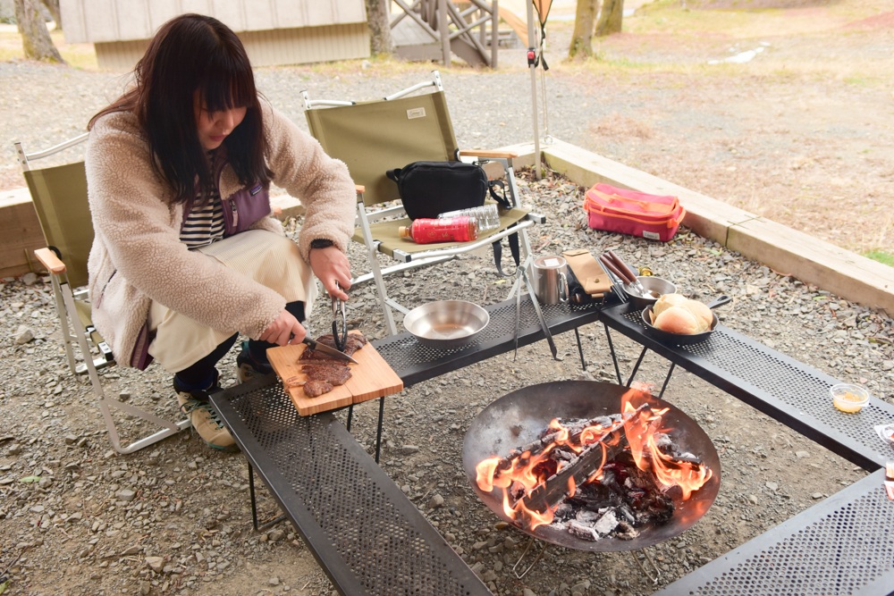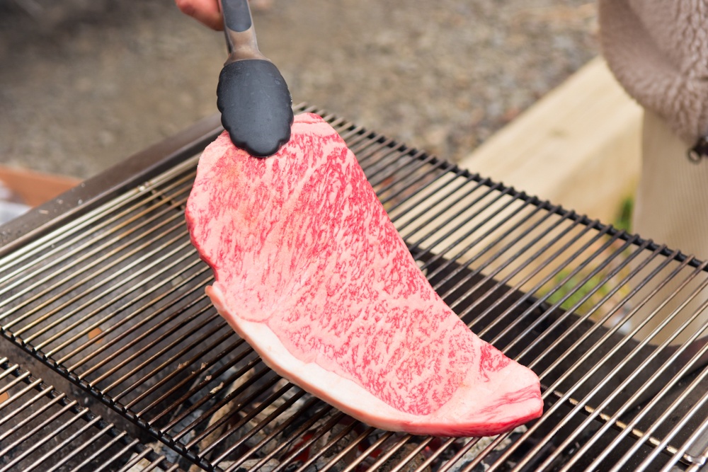 早速飛騨牛を焼いていきます。いい感じに脂が乗ったお肉の味に悶絶。外で食べるご飯はまた格別です。