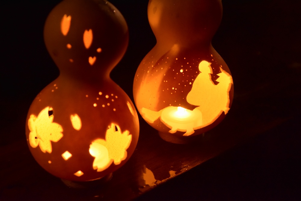 先ほど作ったひょうたんランプにも火を灯してみると、とっても幻想的でいい感じ!癒されました。