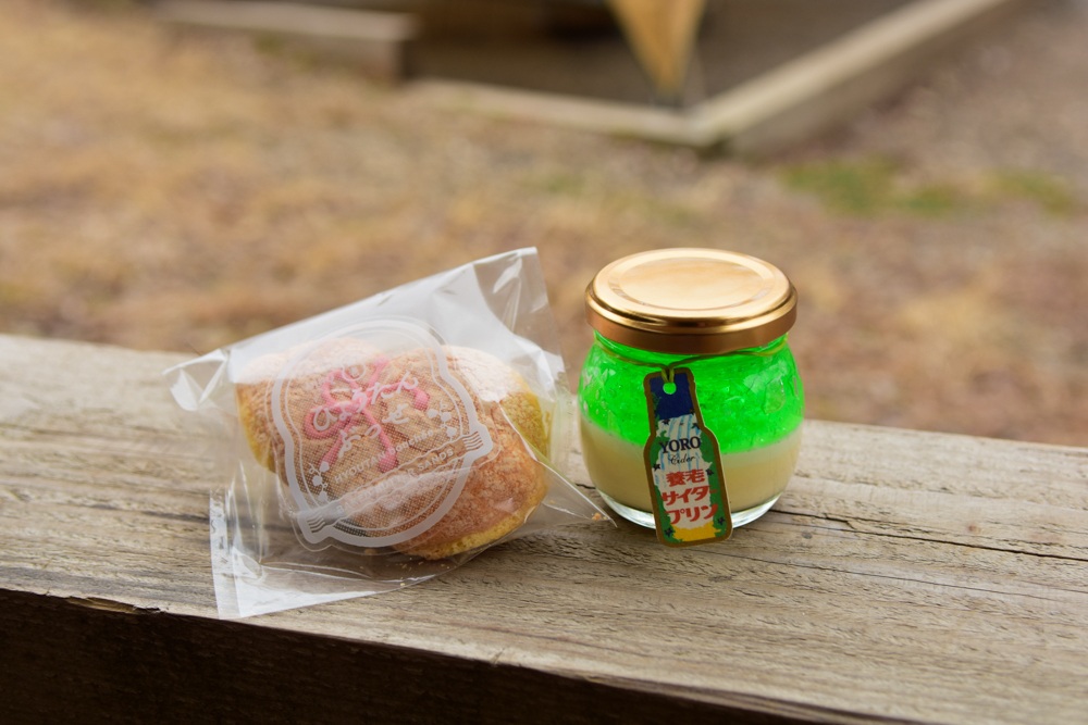 ゲットしたのは、同じくYOROラボプロジェクトの一環で誕生した「養老サイダープリン」と町特産ブランドに認定されている「ひょうたんブッセ」。どちらも地元の人や学生とのワークショップを通して開発された商品です。「養老サイダープリン」は日本最初のサイダーとされる地元の養老サイダーが使われ、「ひょうたんブッセ」は地元の「老子伝説」からお酒とひょうたんをコンセプトにしており、レーズンバターに使用するレーズンをお酒に漬け込む工夫がされています。