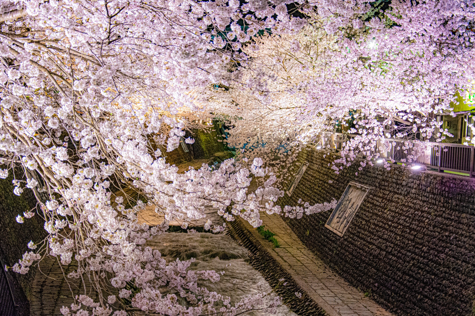 日中の桜並木もとても美しいので、明るい夕方から夜にかけて散策に出かけると、どちらも楽しめて良いかもしれませんね!