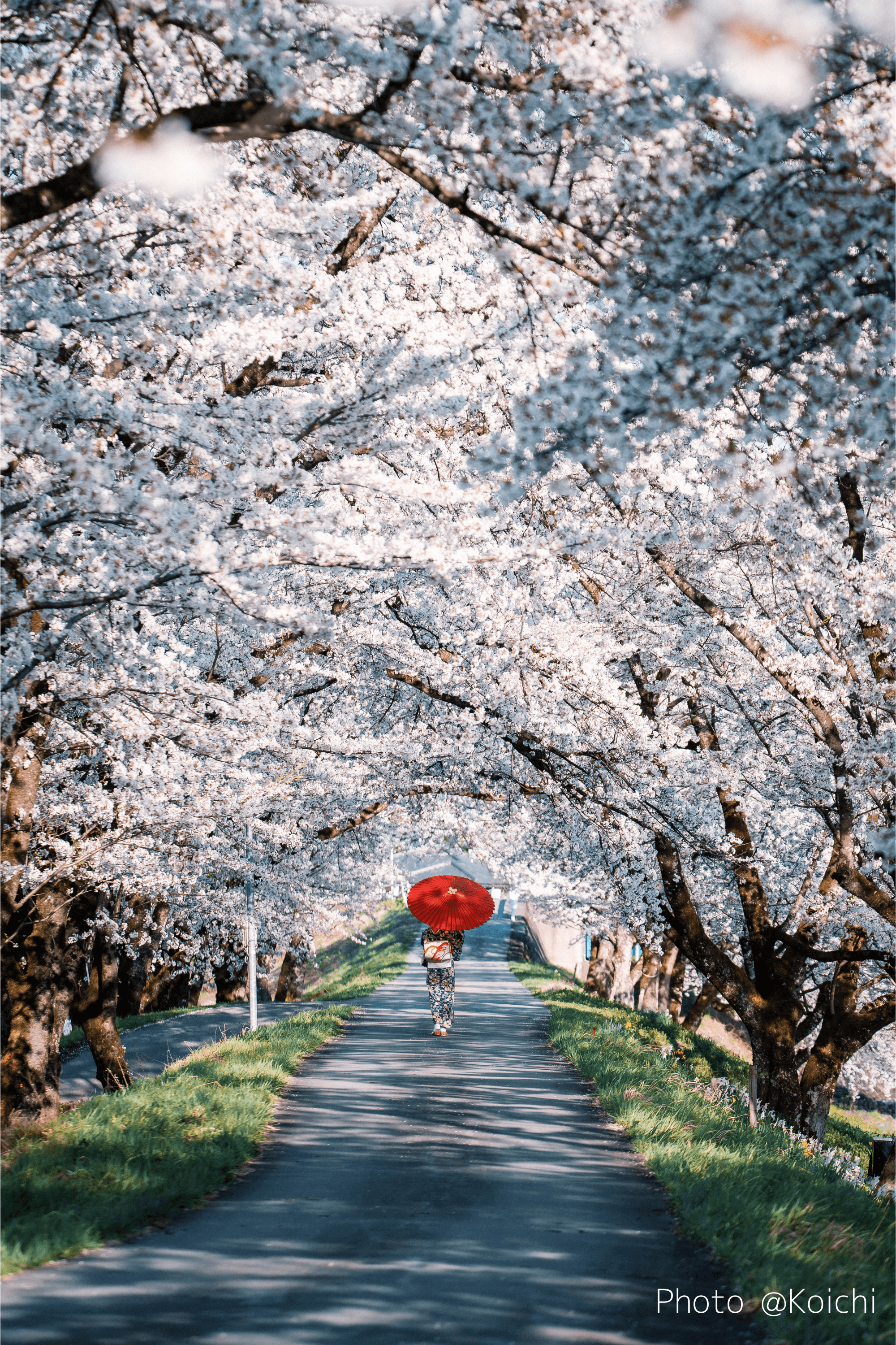 こちらは桜トンネルから御所桜側へ向けて撮られた写真です。和装モデルをさせていただきました。Photo @Koichi