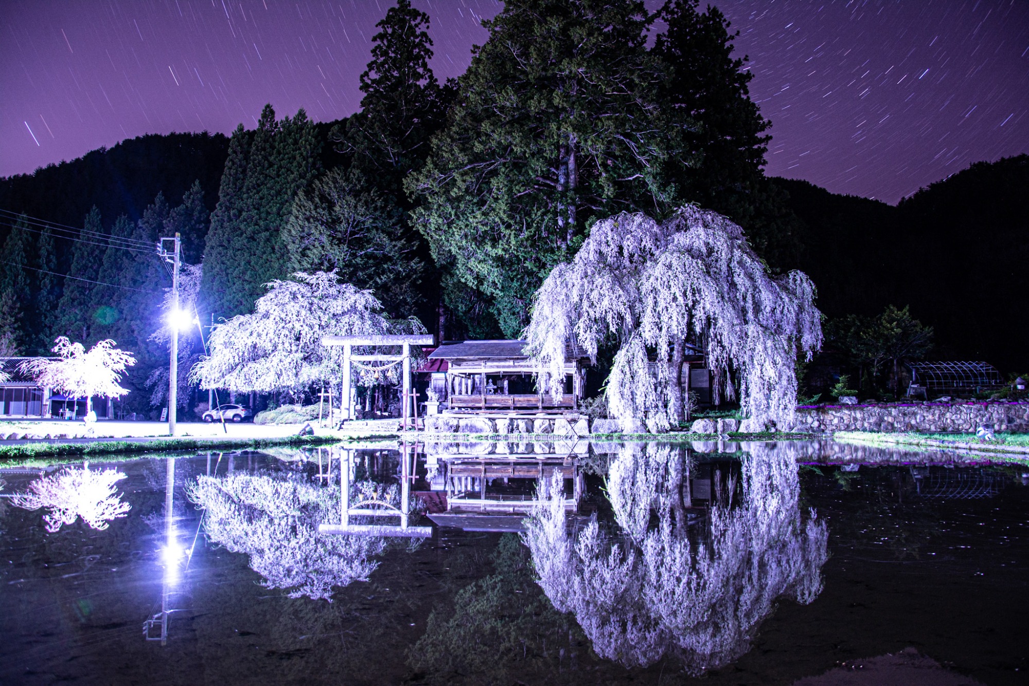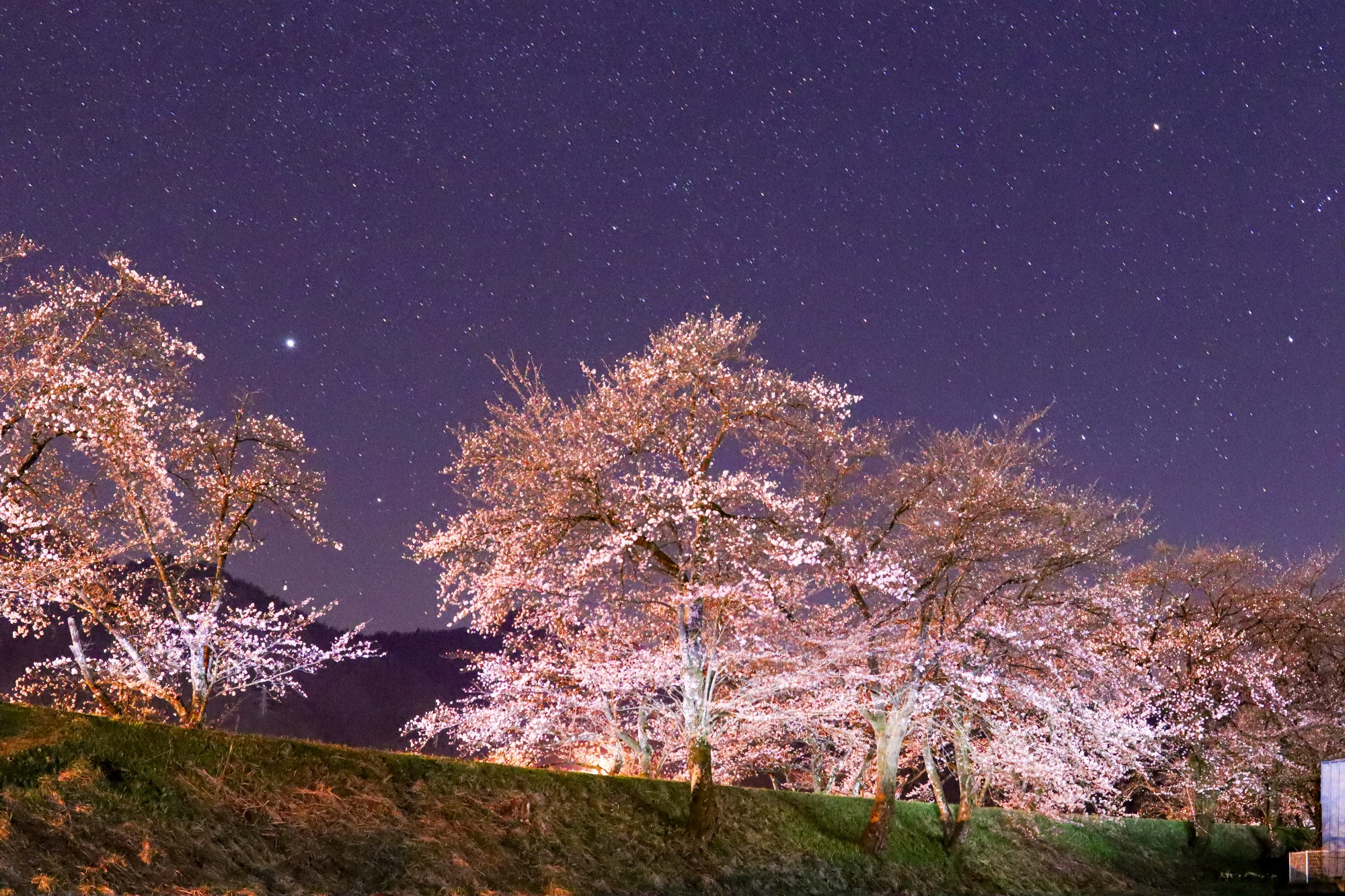この地域は街灯が少なく、晴れた夜には星がよく見えます。桜とともにぜひ星空も楽しんでみてください。