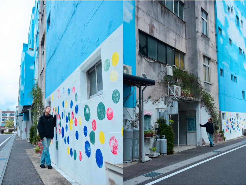 中央通りのアーケードを抜け外に出ると、ビルの壁一面におしゃれなウォールアートが描かれたエリアがあります。空の柄が描かれた壁は、まるで海外の一角に来たかのような雰囲気。離れて撮影しても、近くに寄って撮影しても絵になるのでおすすめです。