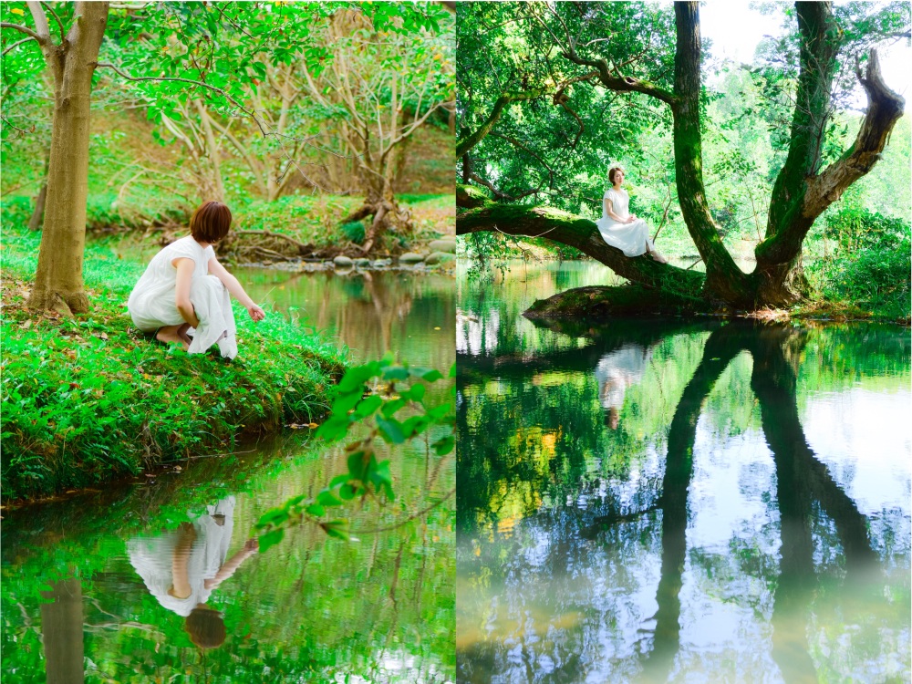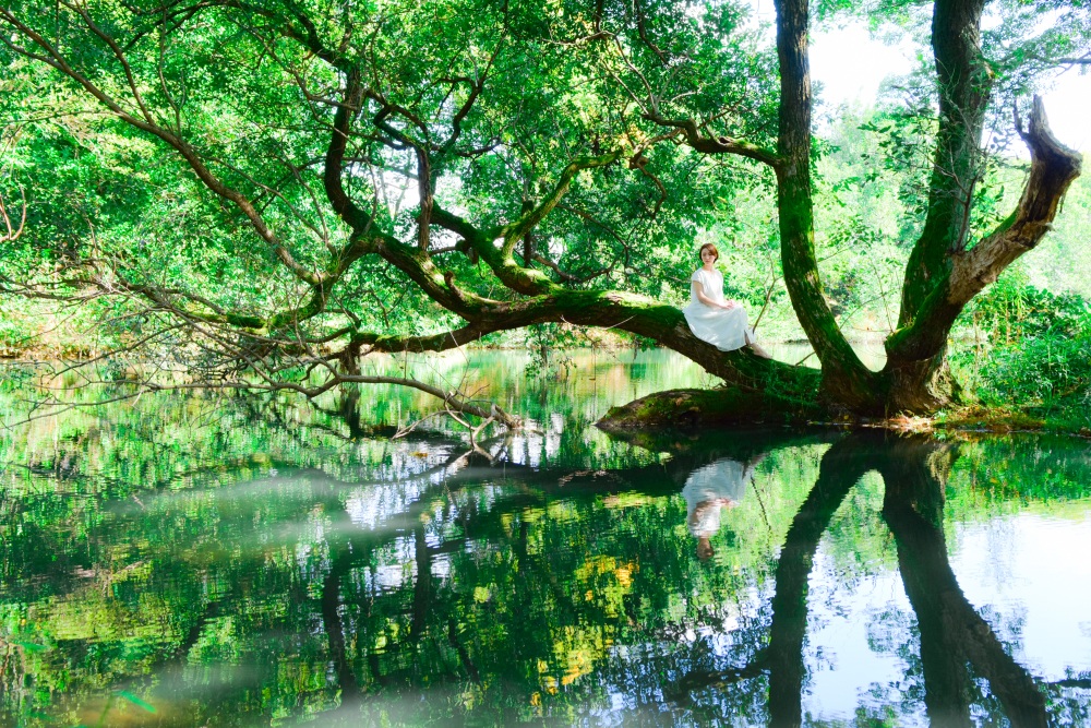 木が多く植わっており、木漏れ日が幻想的。水辺で映り込みを利用して撮影すると綺麗な写真を撮ることができます。
