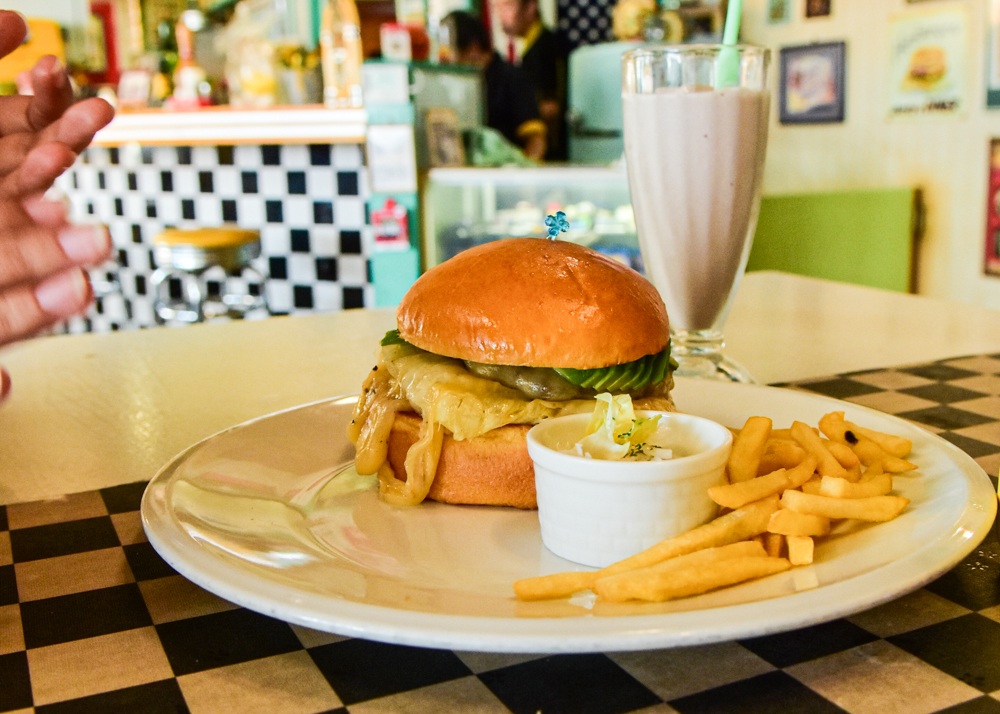 大垣市南頬町にあるオールドアメリカンなハンバーガーやインテリアが魅力的な「Chorky’s DINER(チョーキーズダイナー)」。1950年から1960年代のアメリカのダイナーを再現したお店で、映画の中に入りこんだかのような感覚を味わえます。