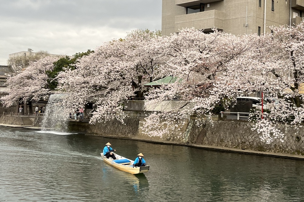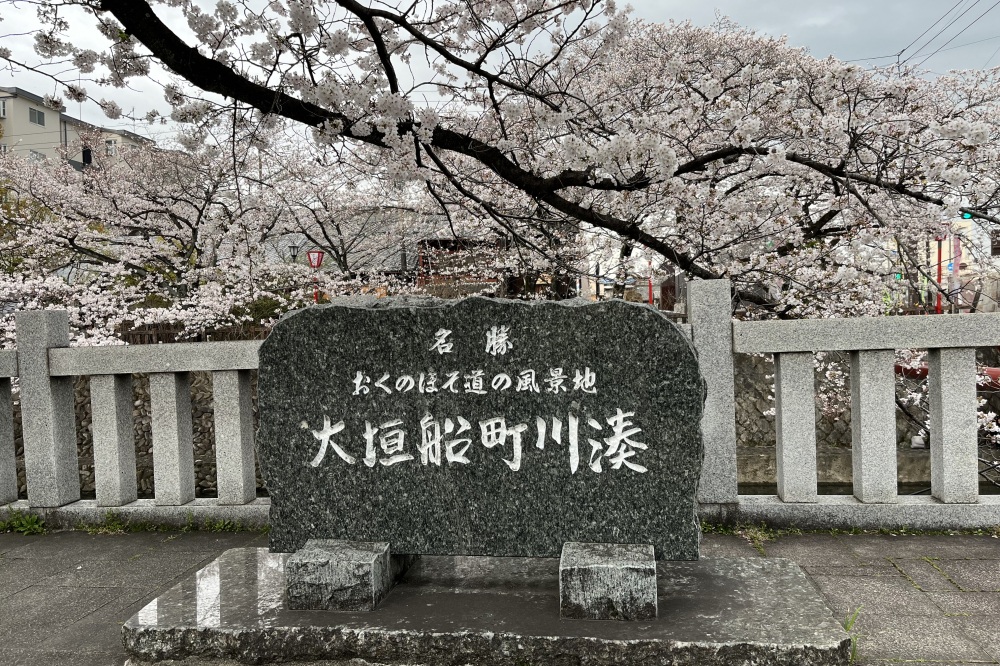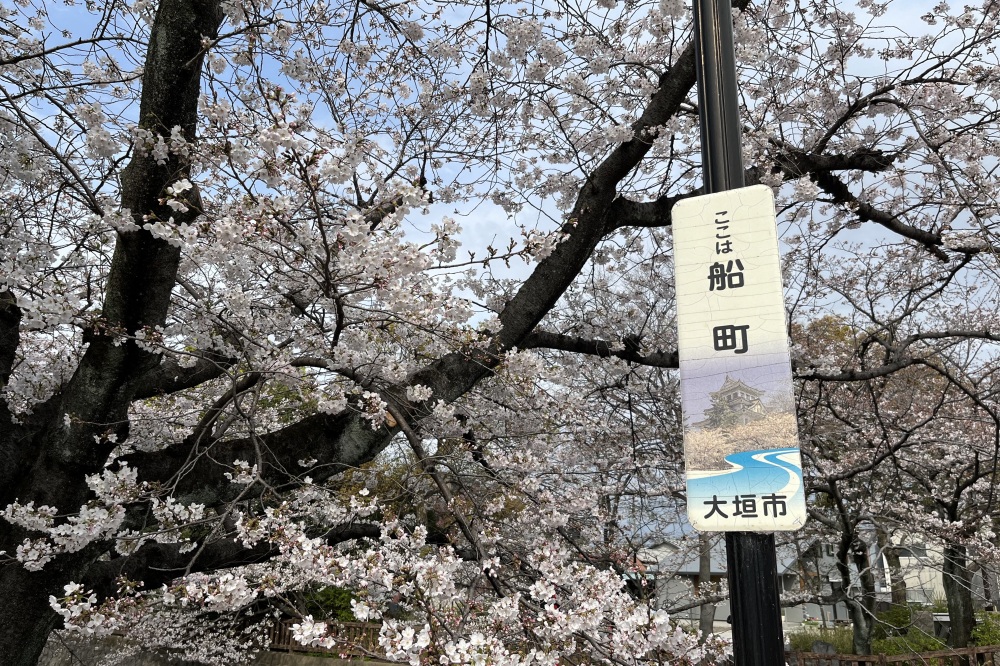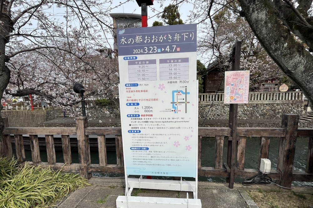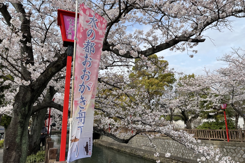 ちょうど桜の季節でもあり、「水の都おおがき舟下り」も行われていました。川の両岸から枝を伸ばす桜の花は、例えようもなく美しい映えスポット。