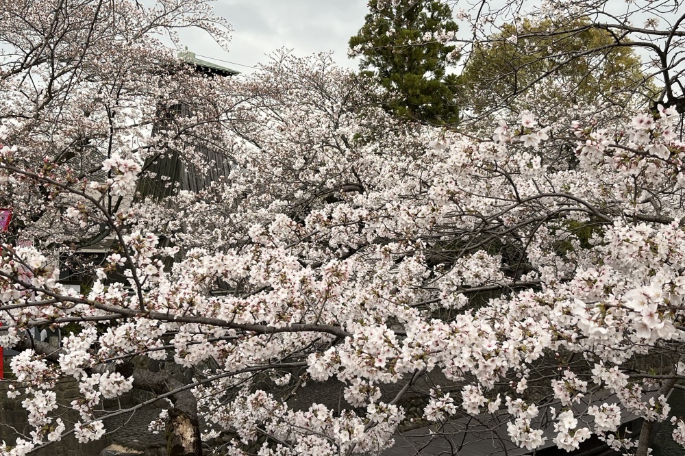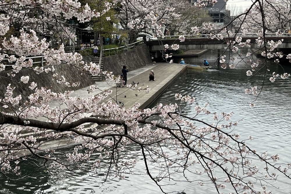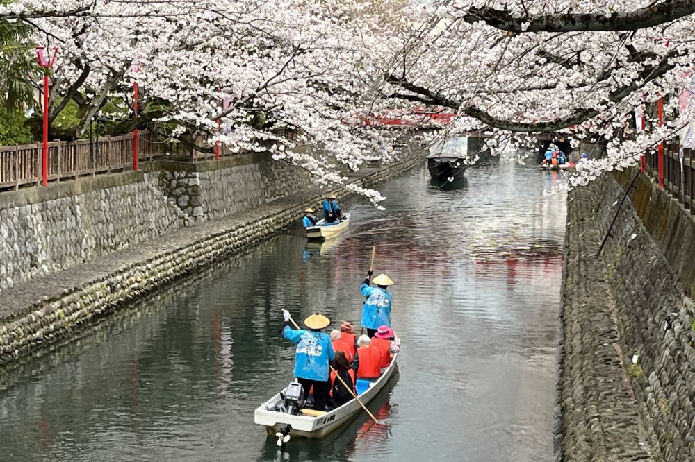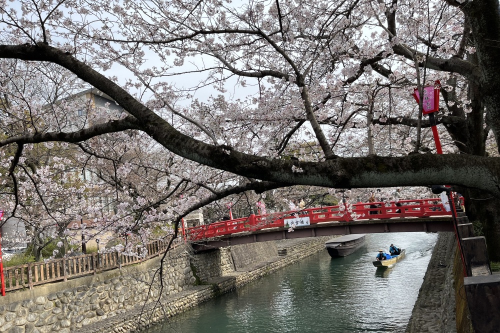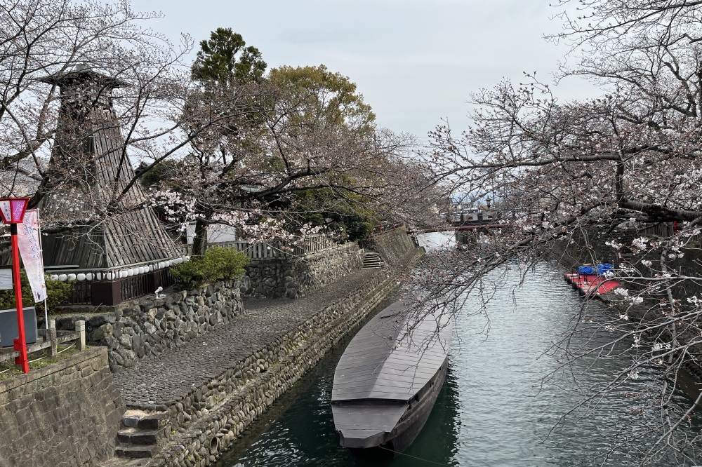 ちょうど桜の季節でもあり、「水の都おおがき舟下り」も行われていました。川の両岸から枝を伸ばす桜の花は、例えようもなく美しい映えスポット。