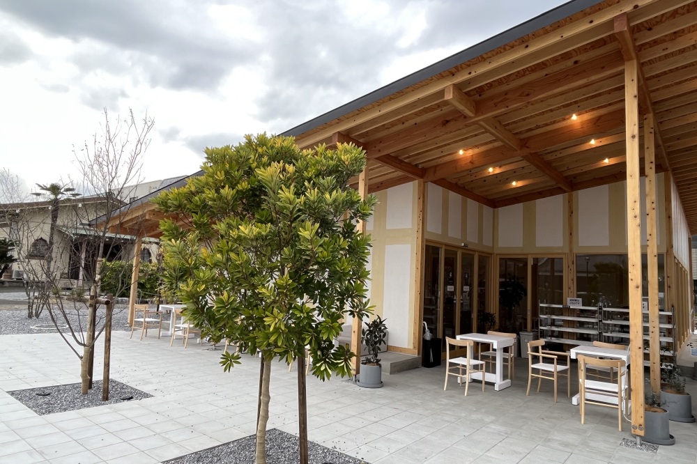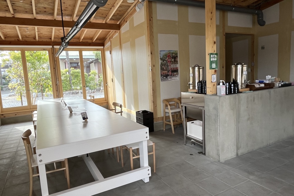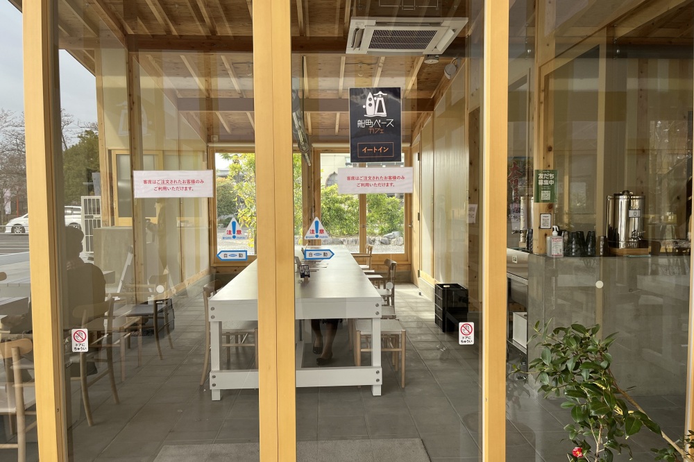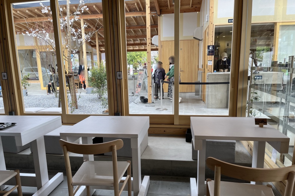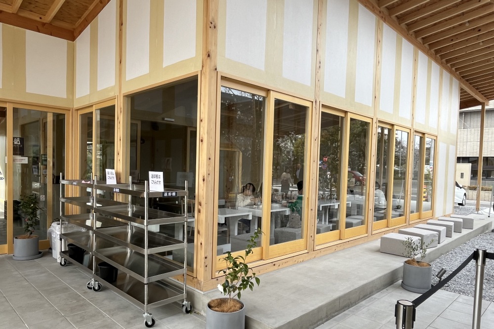 長坂氏は「半建築」を提唱しており、使い方が決められた設計ではなく、実際に使う人が自由にアレンジする余地が設けられています。大きな屋根とガラス張りの店内は、開放感あふれる空間になっています。