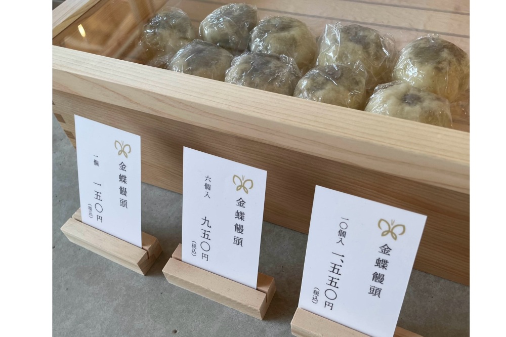 「金蝶饅頭」は、糀を自然発酵させた生地に、こしあんを包んで蒸したお菓子ですが、その日の天候や気温に味わいが左右され、作るのが難しいお菓子なのだそうです。
