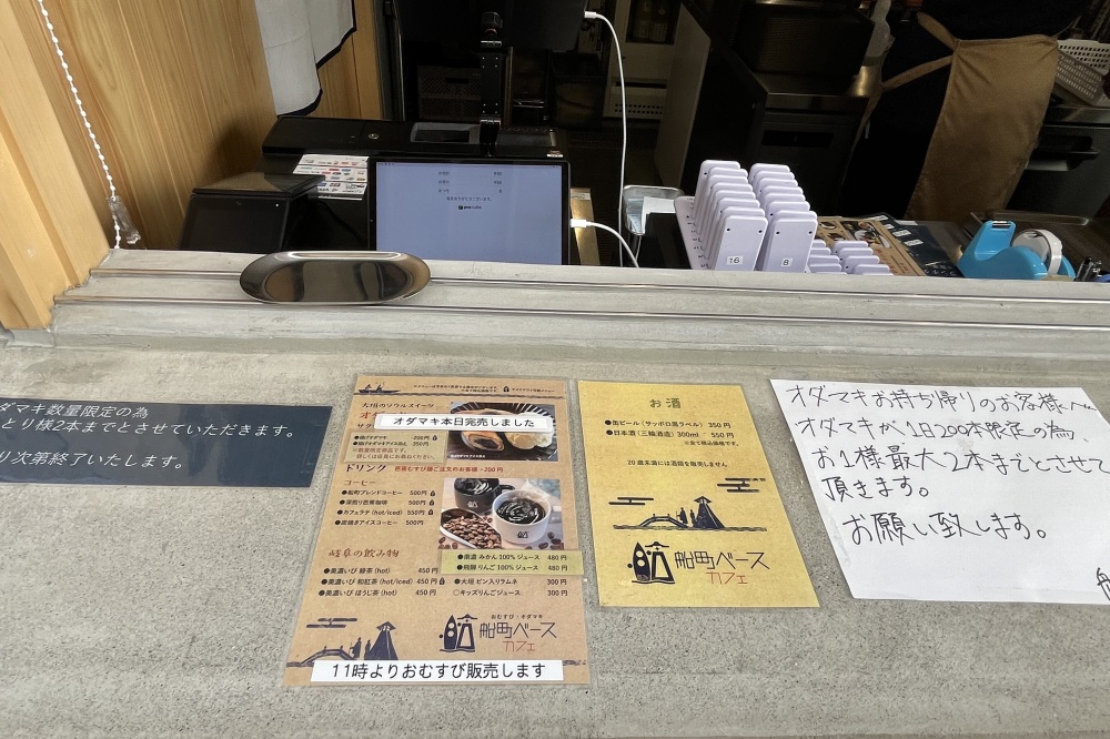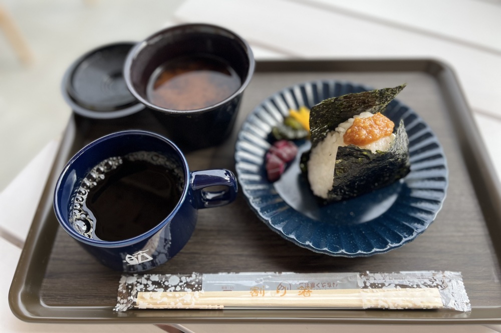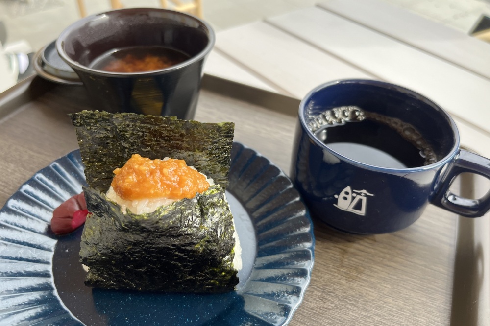 「船町ベースカフェ」は、「むすびの地」にちなんで、おむすびやコーヒーなどの飲み物が味わえるカフェ。