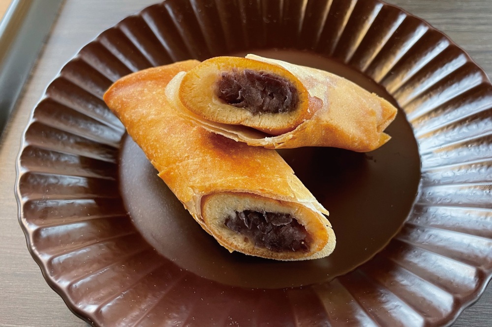 昔ながらの揚げオダマキは、てんぷら粉を水で溶いた衣をつけ揚げたボリュームたっぷりのお菓子ですが、ここで提供されるのは春巻きを使ったもの。現代風に洗練されたアレンジが大人気!