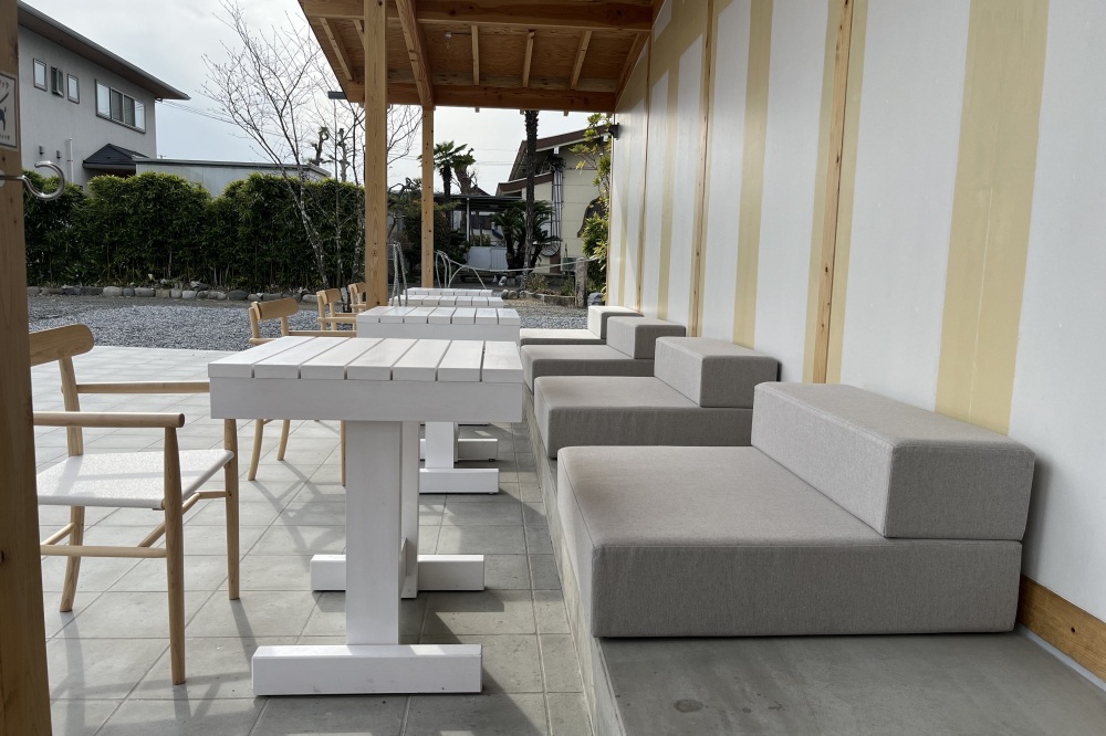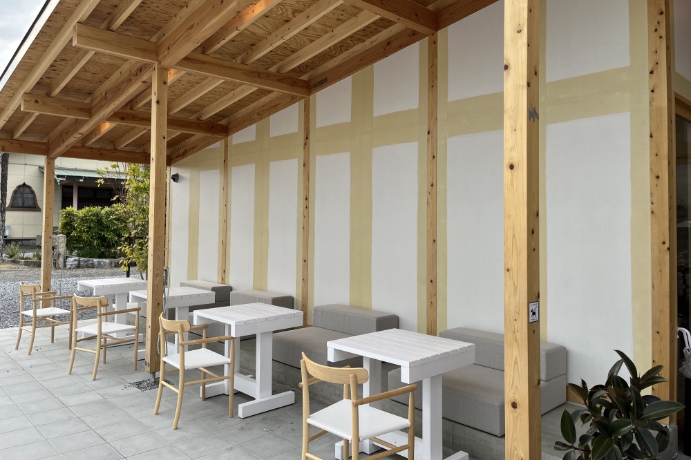 お天気のよい日には、外のテラスで食べるのもいいですね。