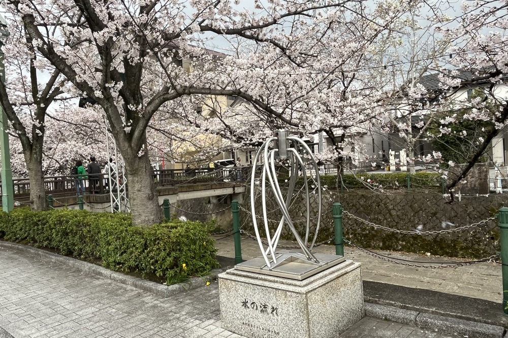 大垣市によると、水門川に沿った「四季の路」は、「奥の細道むすびの地」を起点に「四季の広場」「貴船広場」を回遊し、愛宕神社(錦町)までの総延長2,200メートルの路(緑道)です。