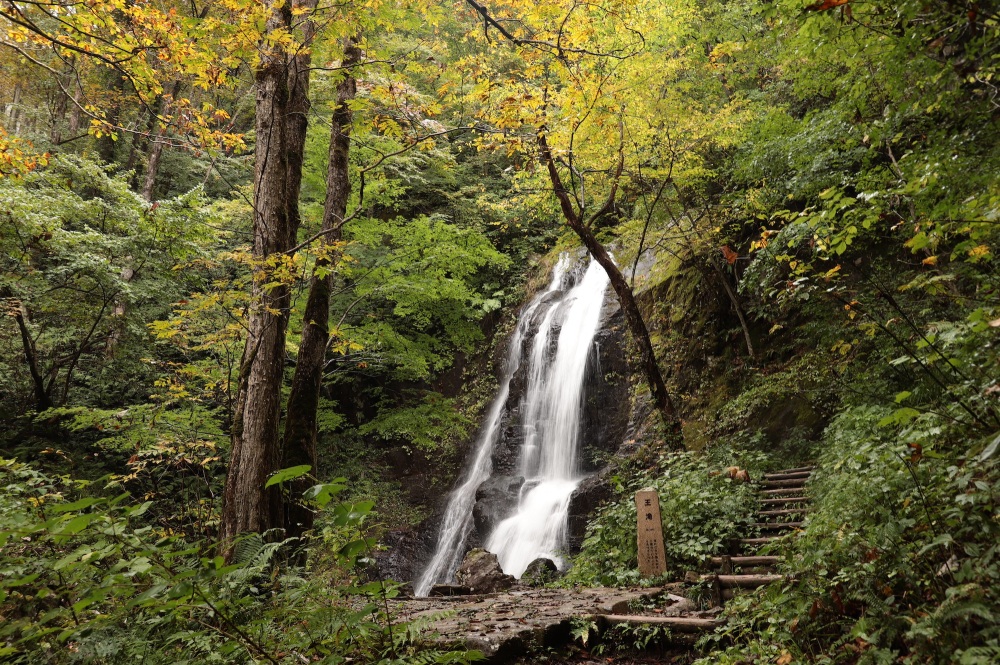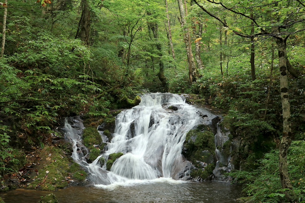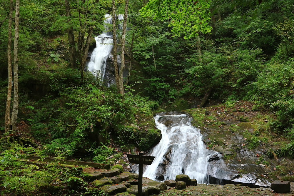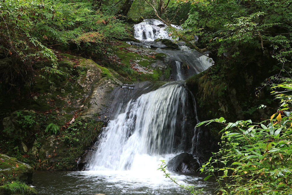 見どころポイントは大きく3つ。樹林帯に溶け込む単瀑、迫力抜群の連続瀑、そして周囲に広がる原生の自然です。