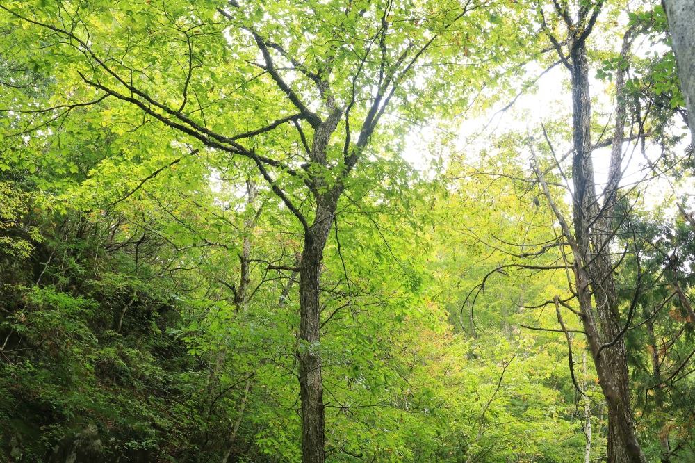 最後は、周囲に広がる原生の自然です。面白い形をしたカツラの木や、寝牛岩と名付けられた大岩まで、手付かずの樹林帯では様々な発見があります。中でも初夏から夏にかけて、緑が溢れかえるような広葉樹の緑のシャワーに感動します。