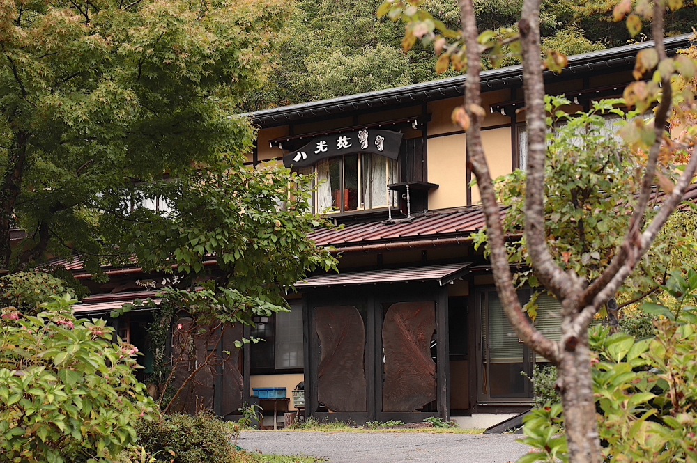 宇津江四十八滝ハイキングを楽しんだ後は、飛騨高山へ戻ってランチというのも良いのですが、せっかくであれば隠れ家的な名店へ足を運んでみてはいかがでしょうか。お店の名前は「創作料理 八光苑」さん。宇津江四十八滝の駐車場から車ですぐの場所に位置しています。