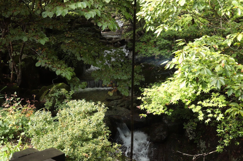 巨木が連なる原生林に溶け込み、下には小さな流れと滝が続いていきます。鳴り響く轟音から優しいせせらぎ音に。渓谷にこだまする音の強弱も心地良く、いつまでも眺めていたい癒しの風景が広がります。