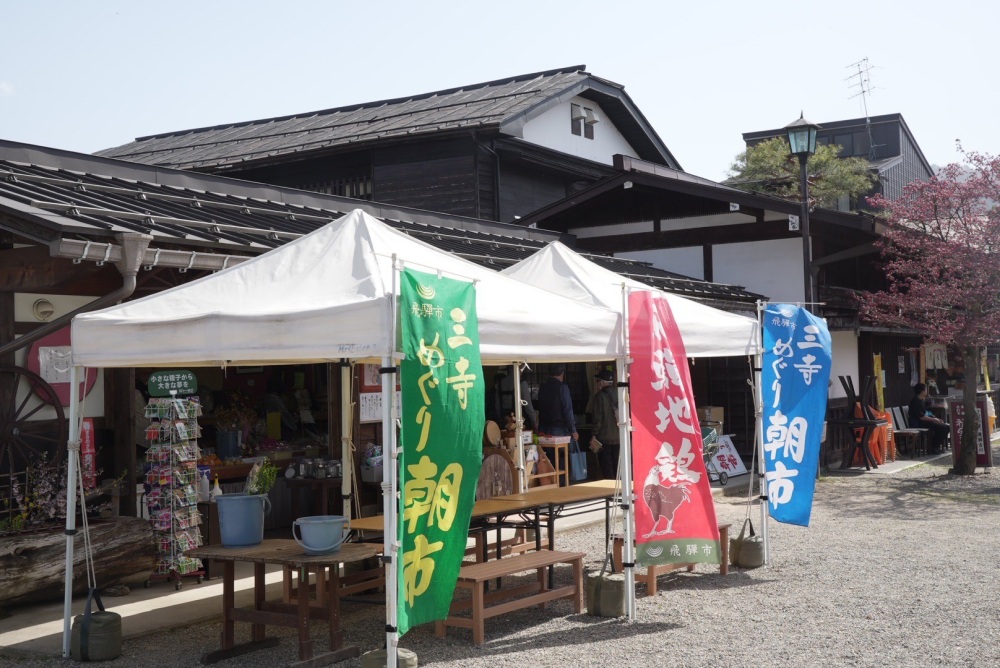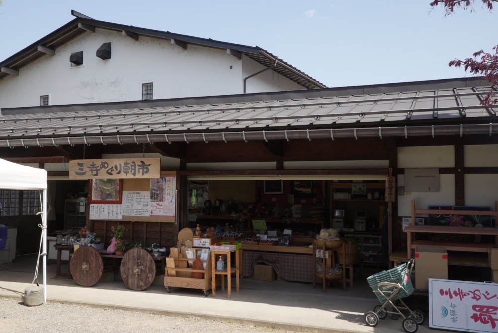 飛騨古川まつり会館の近くにある「三寺めぐり朝市」では、朝採れ野菜を買うことができます。