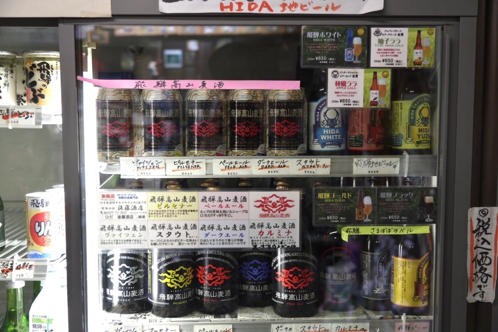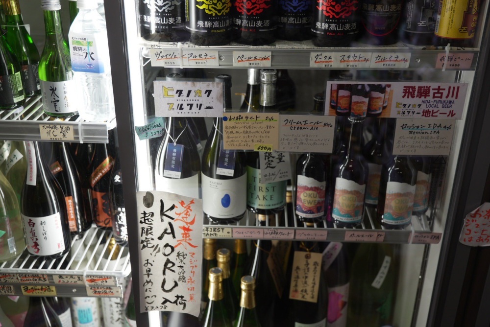 まちなかにある酒屋「後藤酒店」がすごいのは、渡辺酒造店や蒲酒造場の地酒、神岡のお酒、クラフトビールまで揃うところ。