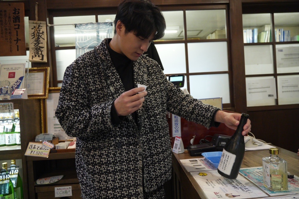日本酒の種類が豊富で、どれもこだわっているのですが、僕が気に入っているお酒は「色おとこ」。訪れると毎回購入しますが、試飲ができるので、まずは色々飲んでから。店員さんがわかりやすく説明してくれます。