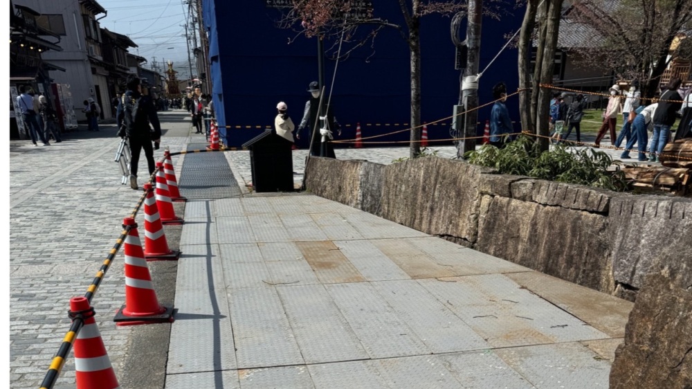 そして、春に鯉が戻って来たらすぐに飛騨古川祭が開催されます。お祭りのピークとなる夜は足元が見にくく、川に落ちるのを防ぐために、飛騨古川まつり会館付近の川には臨時の「フタ」が置かれます。