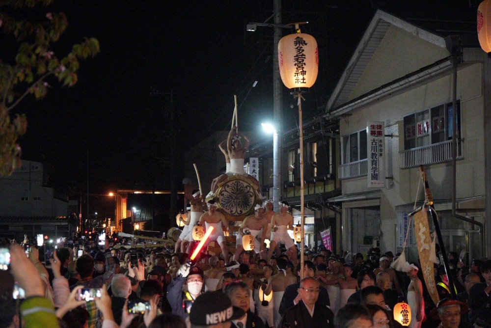古川祭の見どころはやはり夜。夜になると神事が執り行われますが、その時は大勢の観覧客がいて近くでは見られません。昼の明るいうちにお供え物を見ておきましょう。