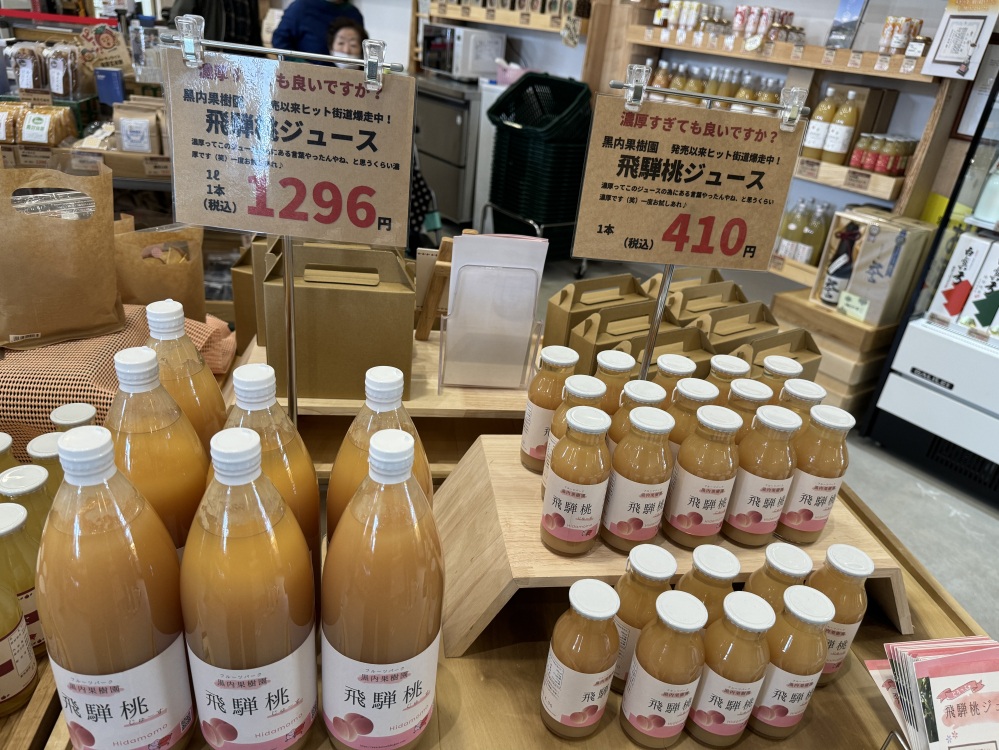 道の駅アルプ飛騨古川内にある「飛騨産直市そやな」は、飛騨の新鮮な野菜やお土産などが揃う直売所。個人的に飛騨りんごのジュースが大好きで、ここへ来ると毎回買っています。
