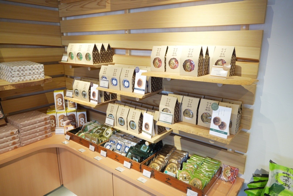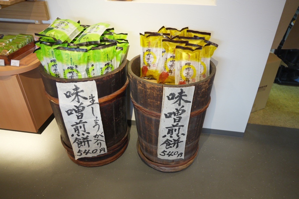 飛騨古川土産の定番「井之廣製菓舗(いのひろせいかほ)」のお煎餅。こんなにたくさん種類があったとは…店内をじっくり見渡すとビックリします。