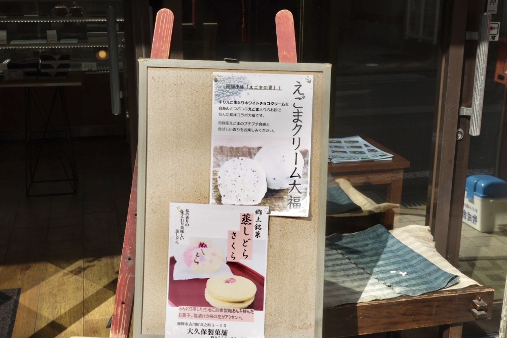 飛騨では「えごま」が料理や五平餅に使われていますが、和菓子屋「大久保製菓舗」では「えごまクリーム大福」が人気です。