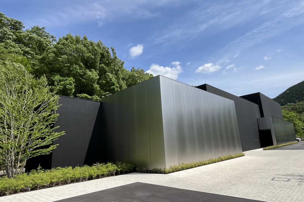 新設された「桃紅館」は、桃紅の作品から墨と銀箔をモチーフに、5つの立方体が組み合わさったモダンなデザインです。