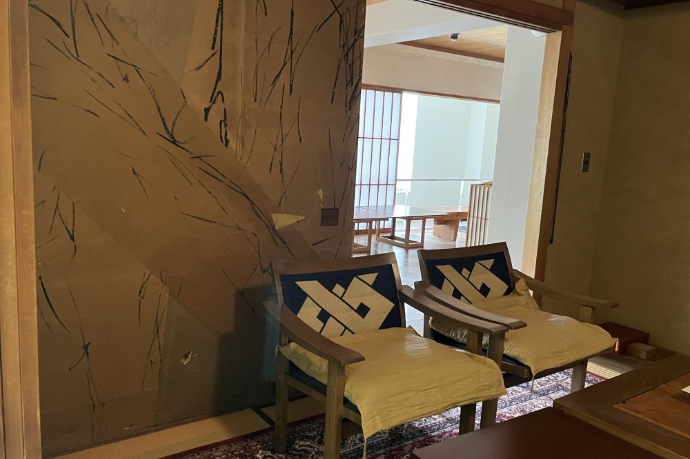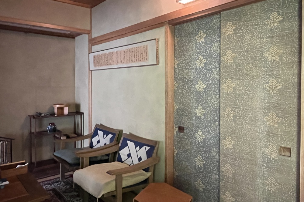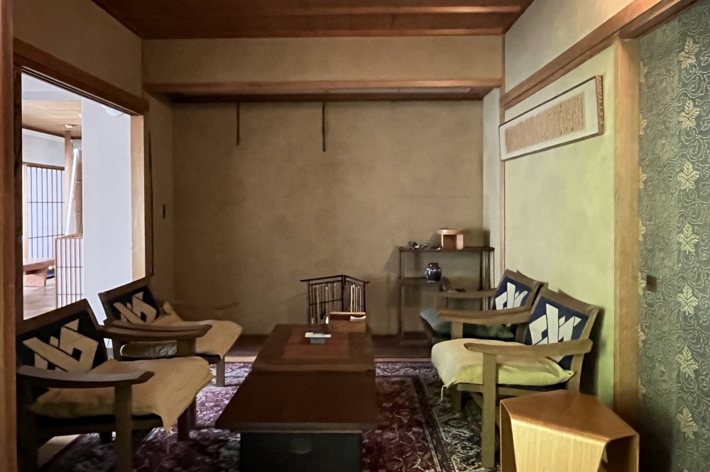 アトリエの隣の応接室も、在りし日のそのままに再現されています。小さいながらも趣味がよい茶室のような部屋。桃紅は、ここで来訪者とどんな話をしたのでしょう。