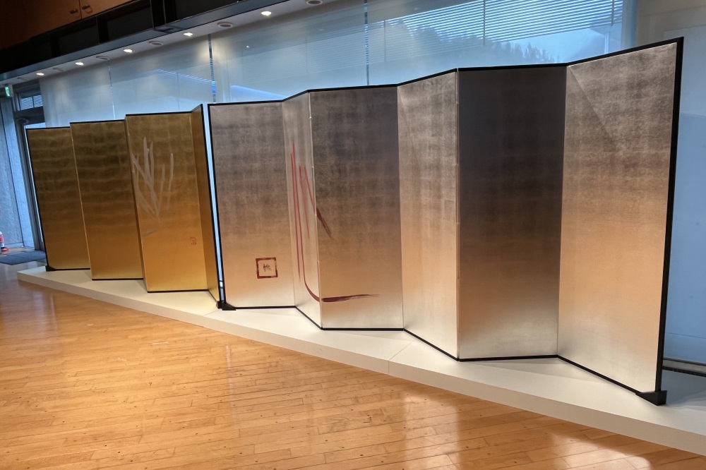 屏風には、現在の上皇様、上皇后様が岐阜県を訪問された折、桃紅の作品をご覧になったことへの感謝の気持ちが表現されています。