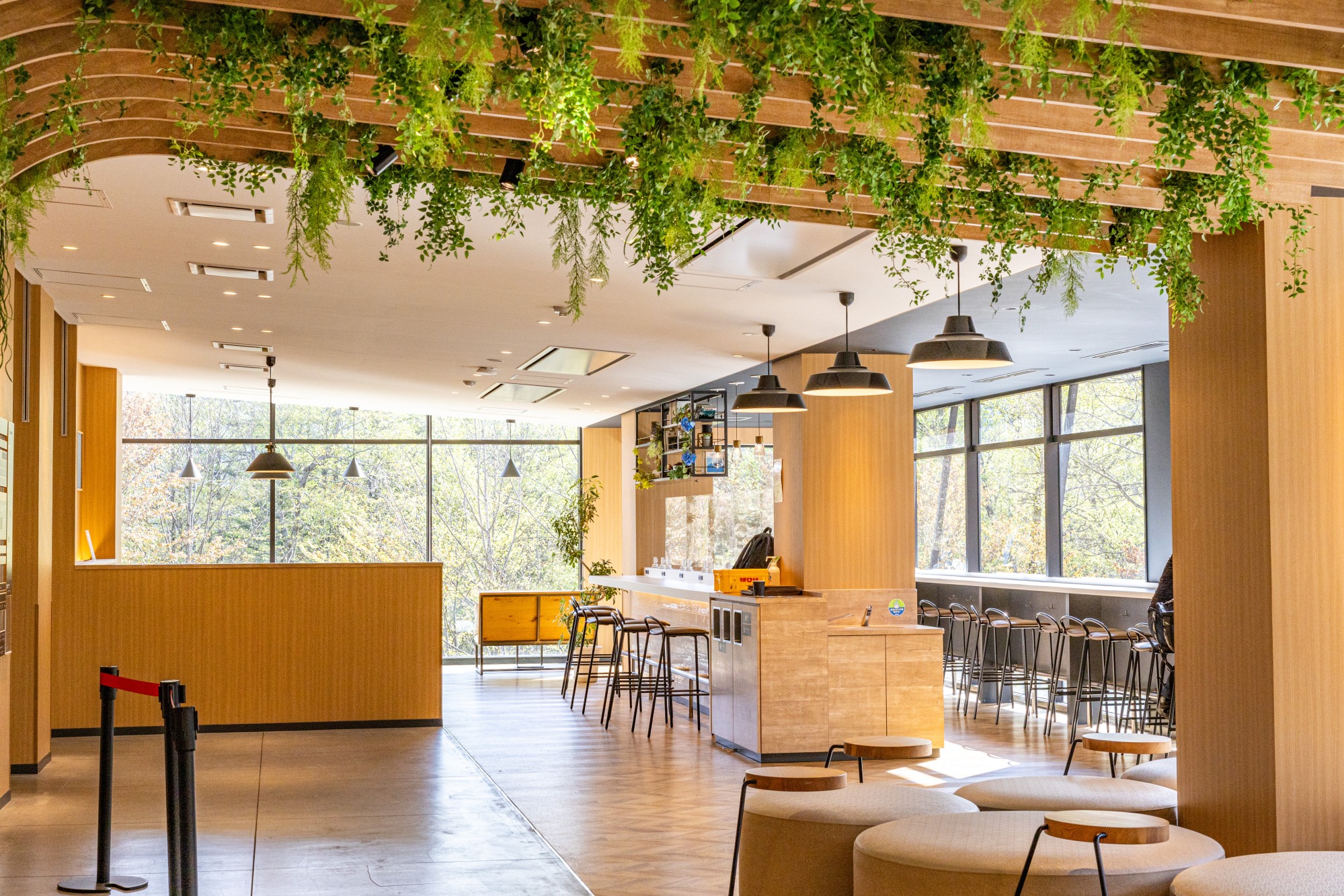 その他、原生林の中でゆったりくつろげる「森のテラス」や、ドリンクを飲みながらゴンドラの発着を真近で見られる「森のカウンター」(下写真)なども新設されています。