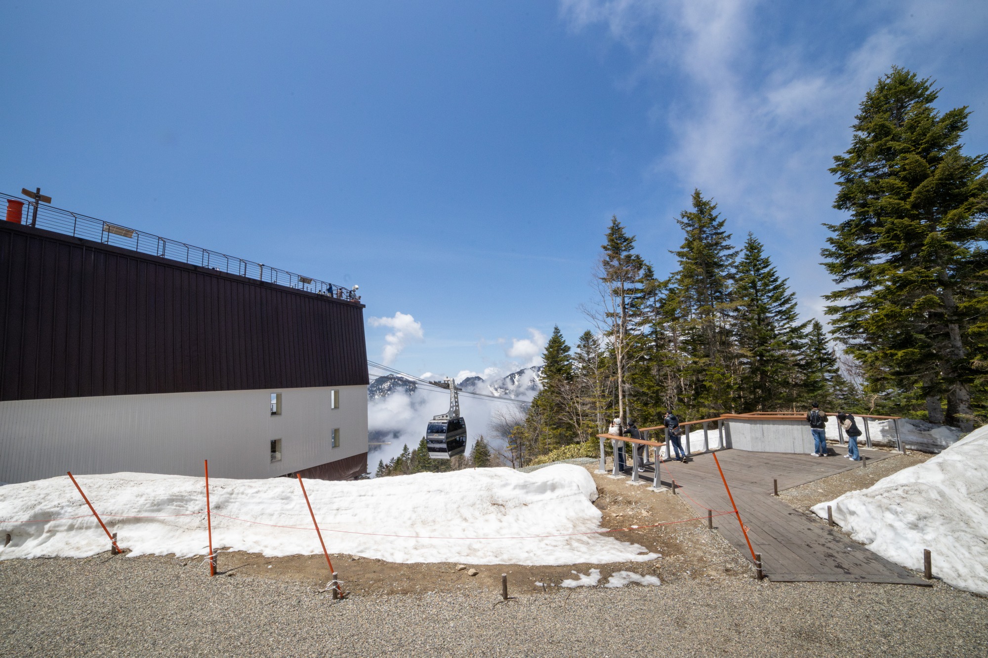 2022年10月、頂上駅周辺の園地が「頂の森(いただきのもり)」としてリニューアルされ、その中でも展望デッキ「槍(やり)の回廊」(上写真)が人気のスポットとなっています。