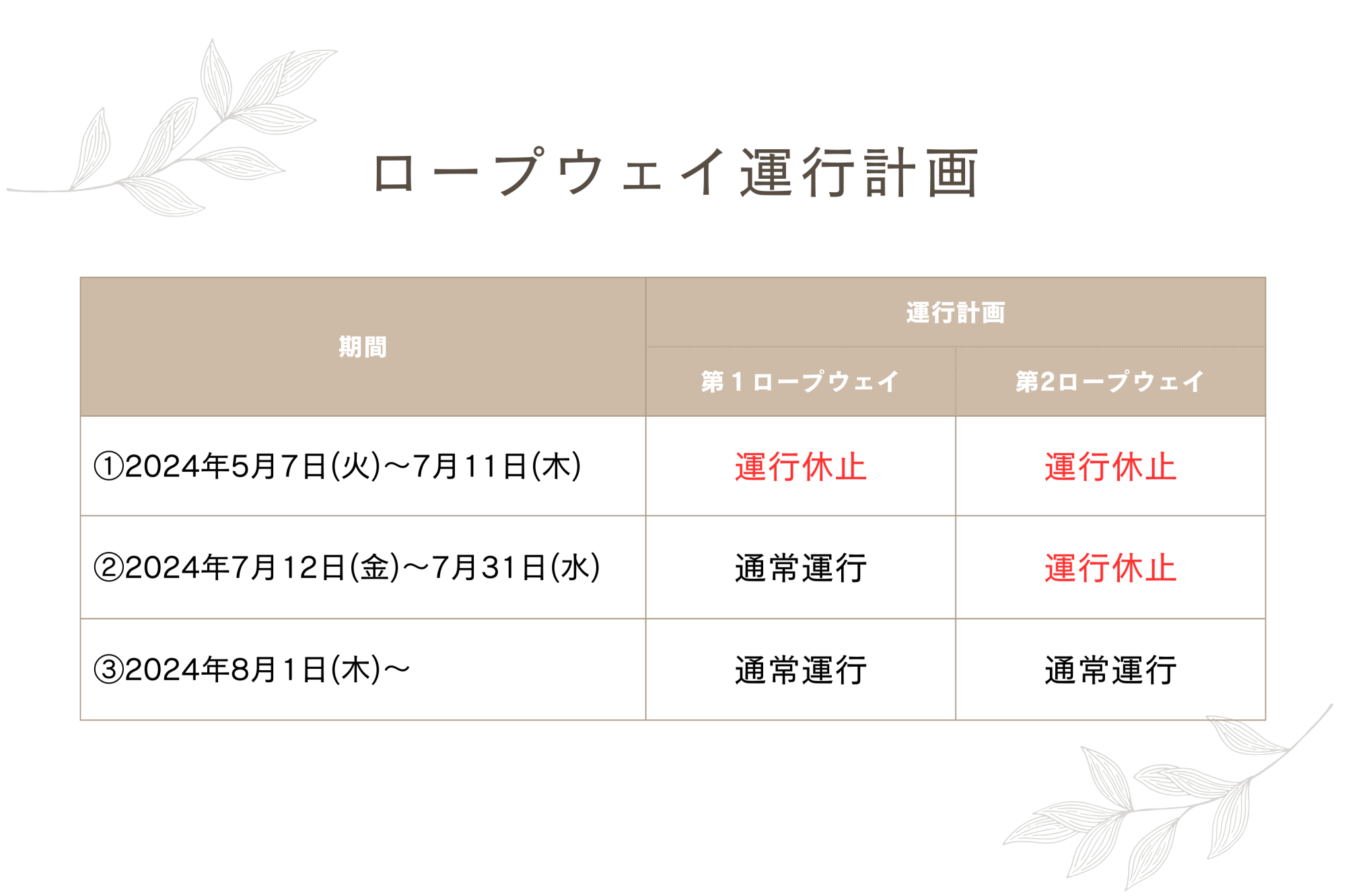 ※第1ロープウェイ通常運行…2024年7月12日〜