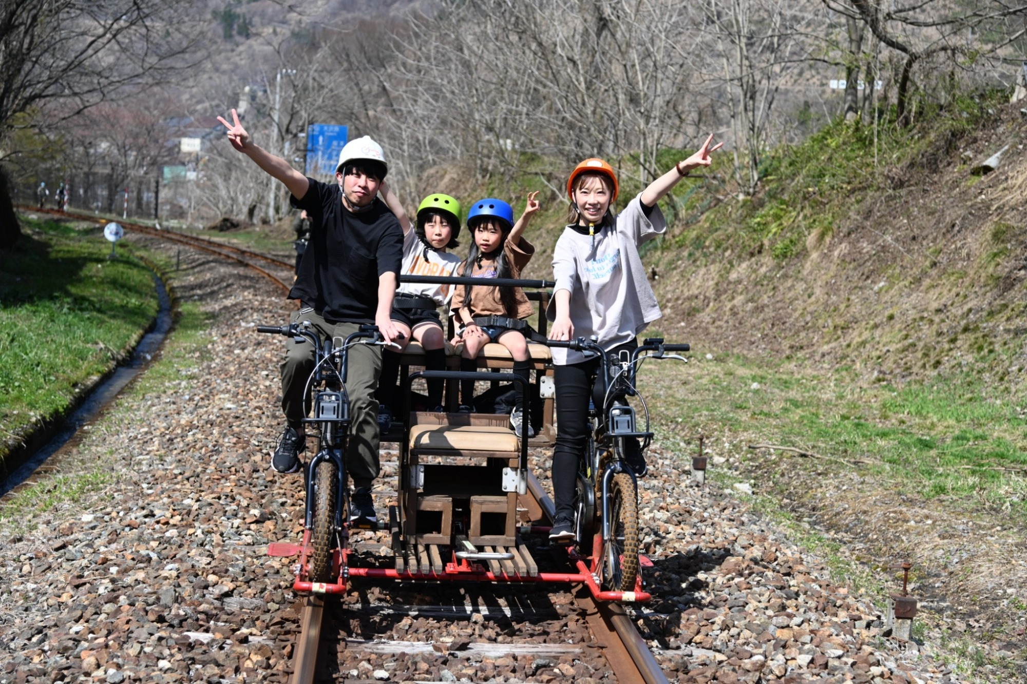廃線となった旧神岡鉄道の線路の上をマウンテンバイクが駆け抜ける大人気アクティビティ「ガッタンゴー!」