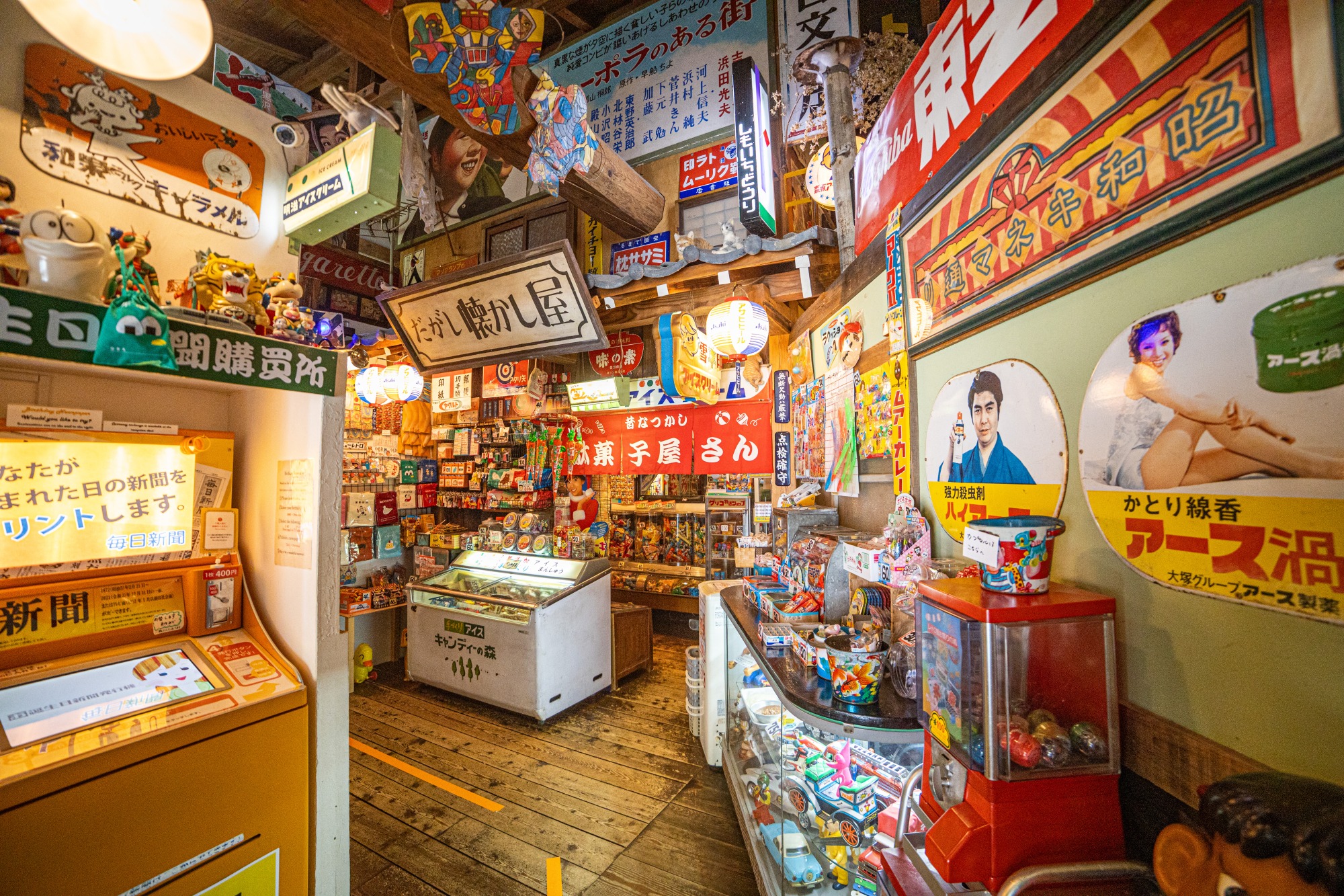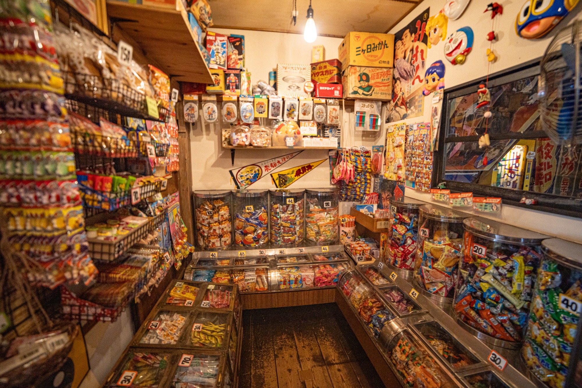 入り口正面には駄菓子屋さんが!豊富な品揃えで、早速あれもこれもと買いたくなってしまいます(個人の感想です)。