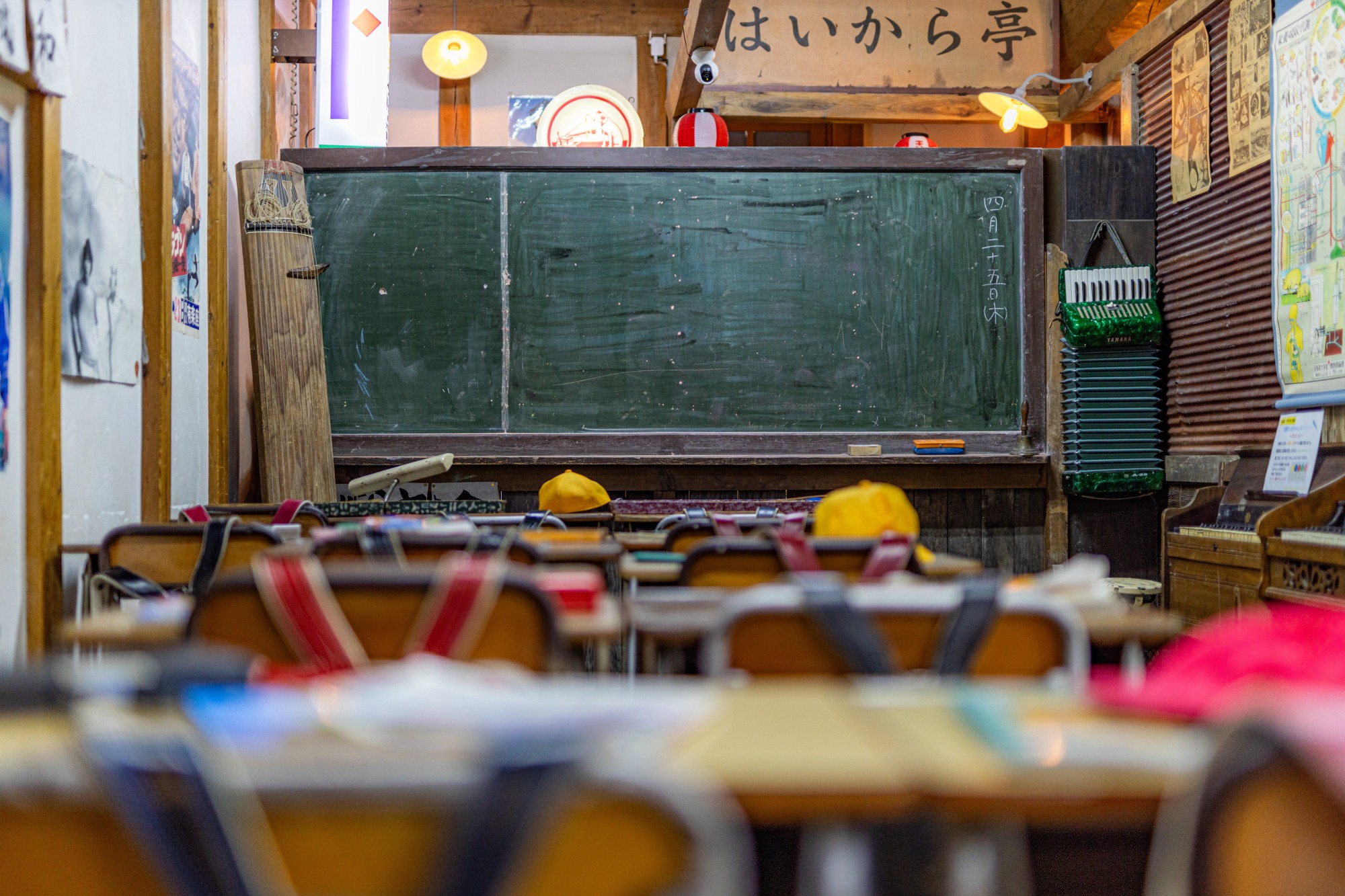 最初に小学校の教室があります。筆者世代は黒板しかありませんでしたが、今ではホワイトボードを使っているところも多いとか。