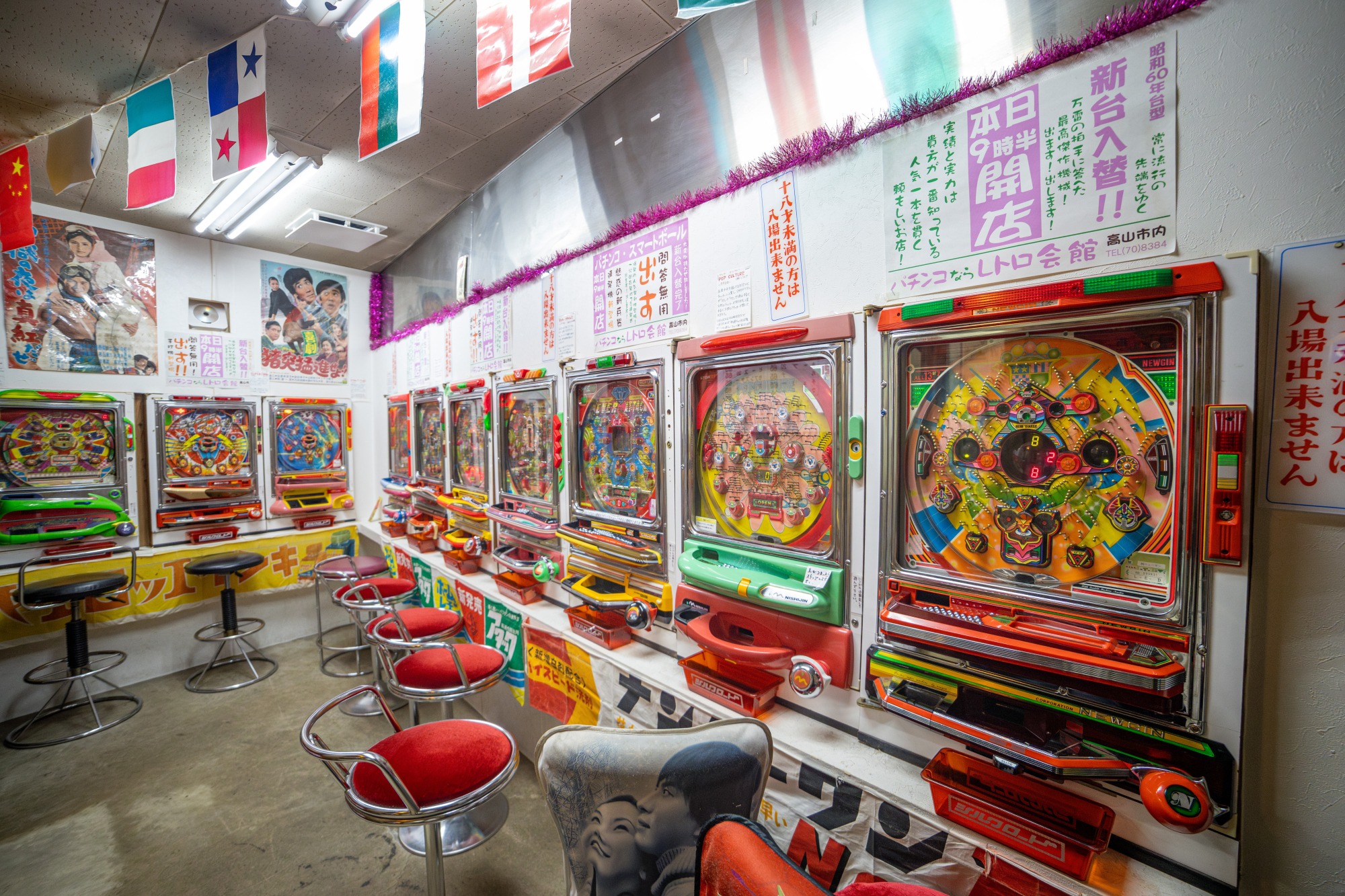 これまたレトロな色味のパチンコ台。実際に動きます!