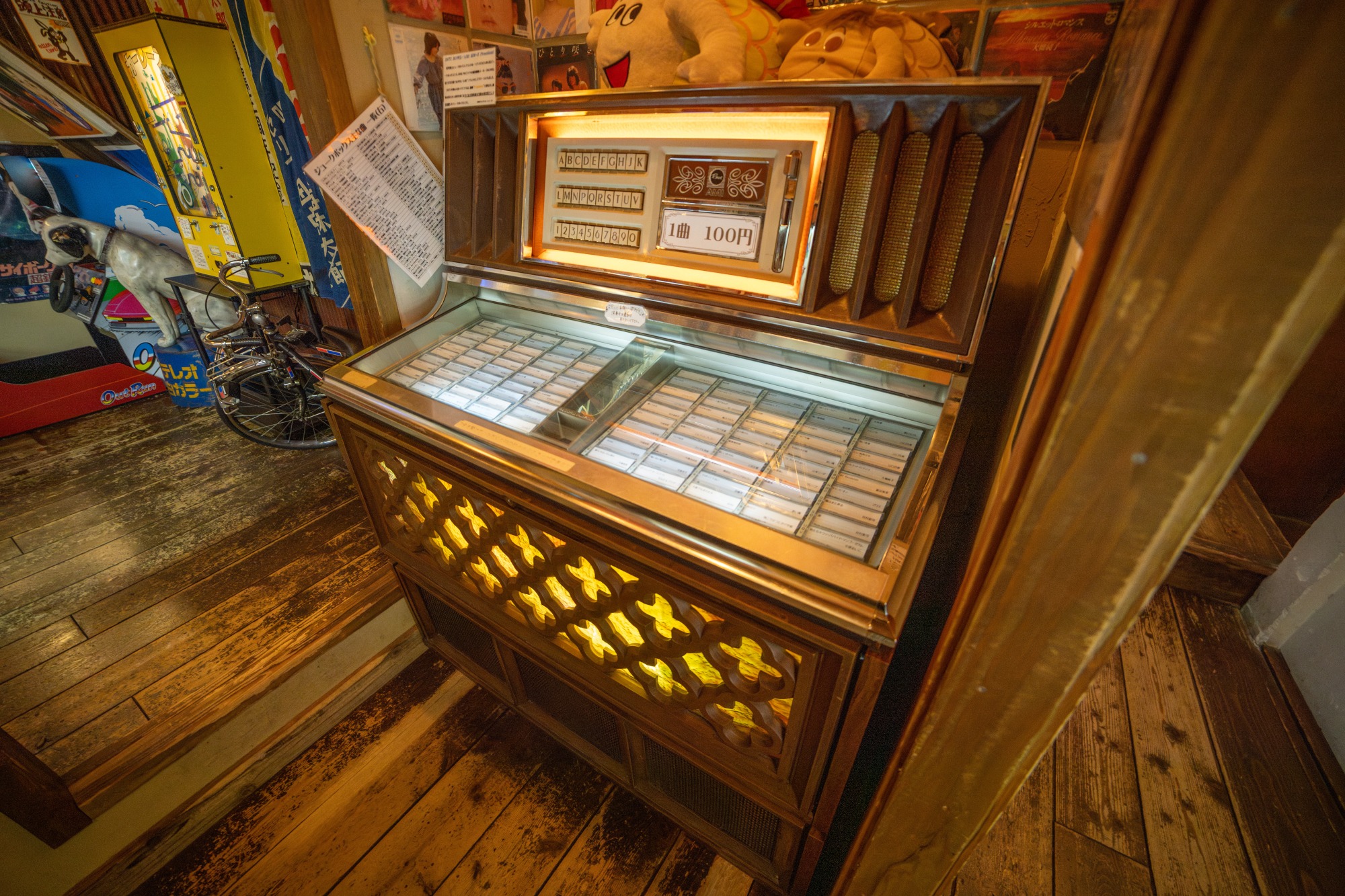 こちらはジュークボックス。名前は知っていましたが、筆者はおそらく初めて実物を見たと思います。