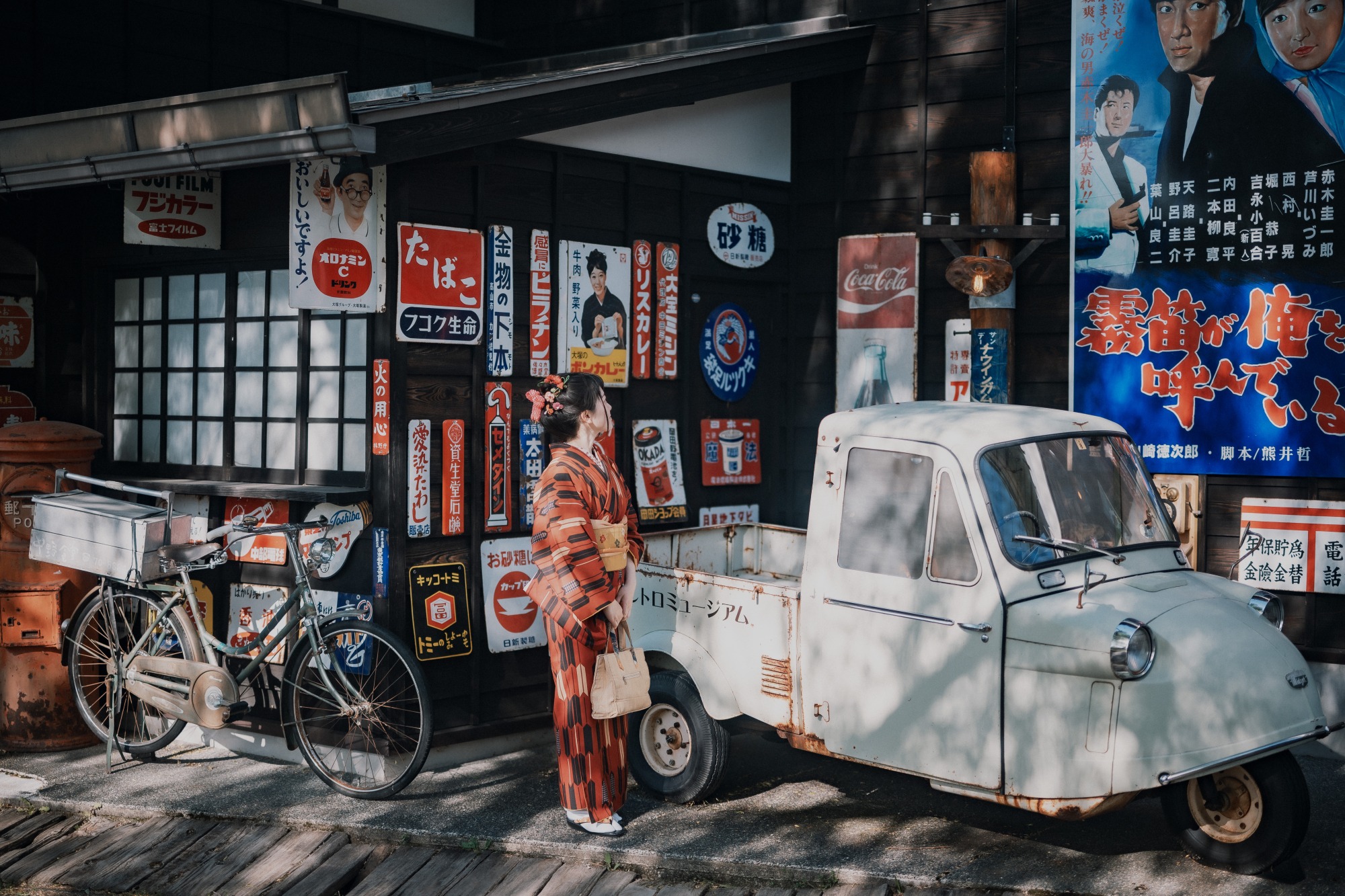 ドラマのセットのように作り込まれた昭和の街並みを歩いたり、触れたり、遊んだり、撮影することができます。