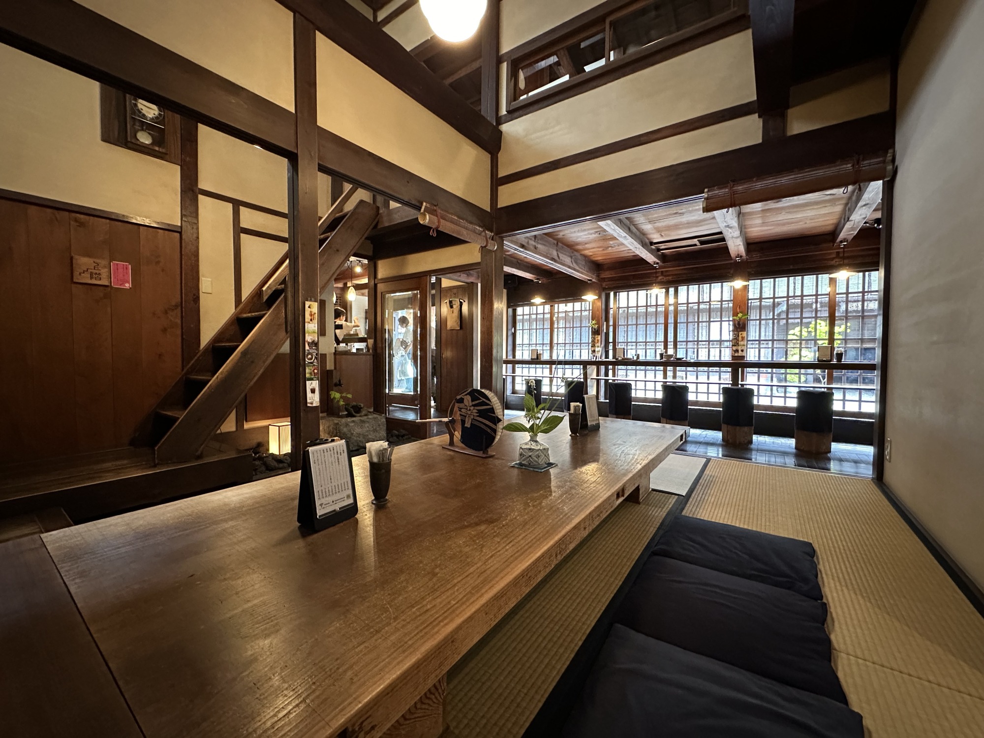 1階には椅子カウンター席とお座敷、2階には座敷カウンター席と小上がりの部屋があります。