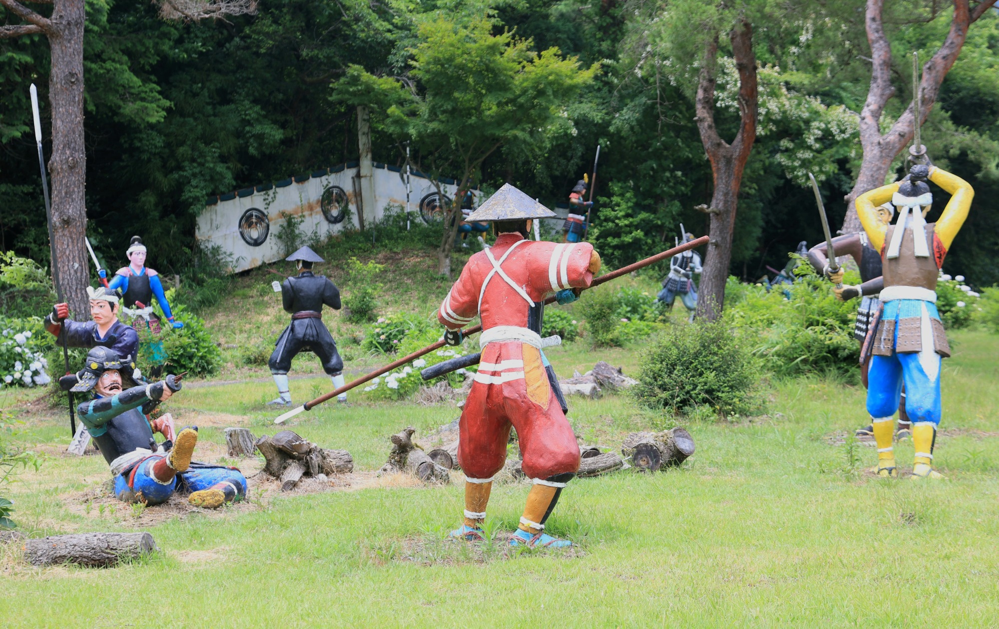 関ケ原ウォーランドは、1600年に行われた歴史的な戦い「関ケ原合戦」を再現したテーマパークで、カラフルな200体以上の等身大の武将像がいる体験型資料館となっています。