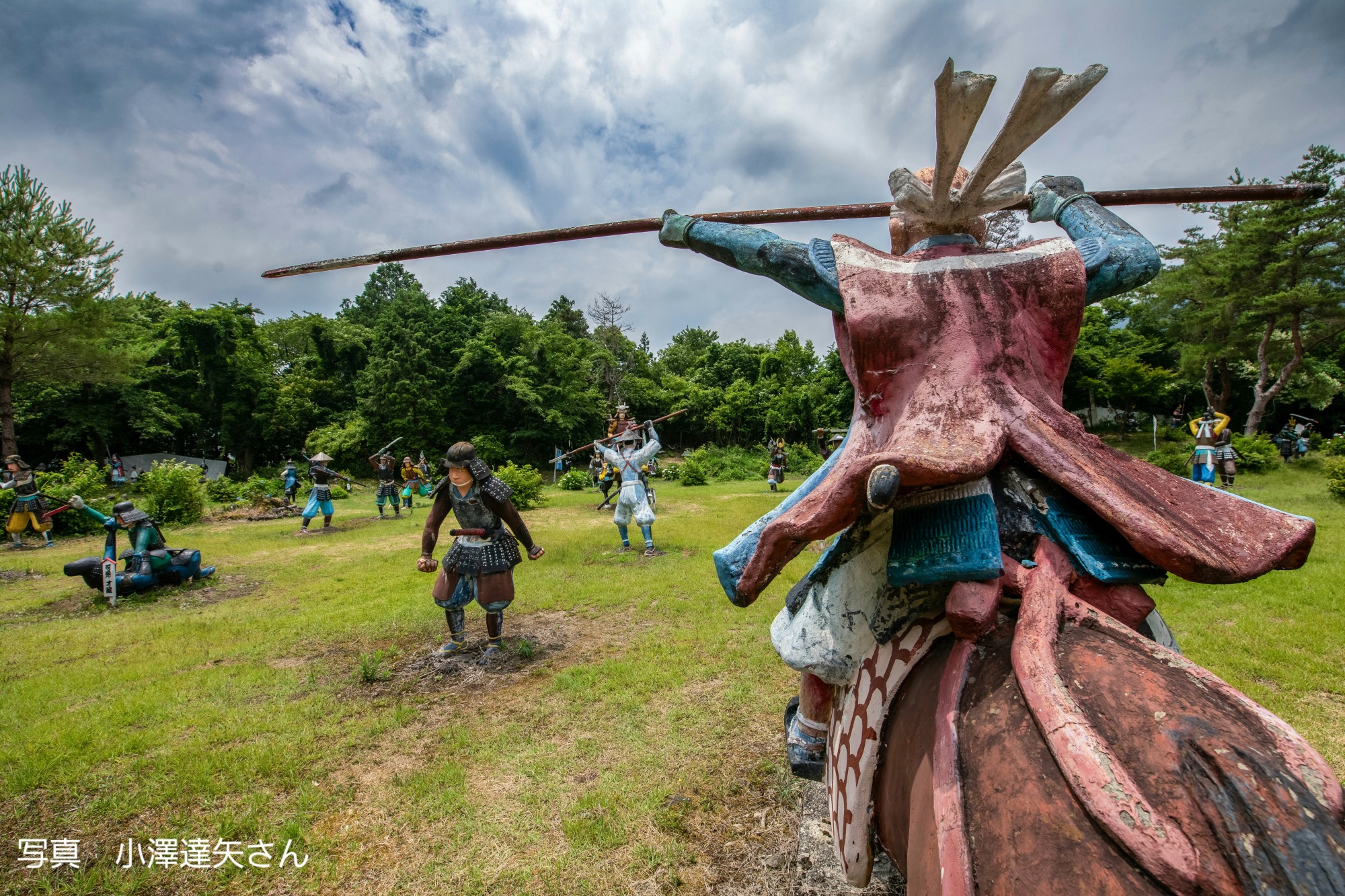 関ケ原ウォーランドは、1万坪という広大な敷地内に、240体以上の等身大武将像を用いて関ケ原の戦いを再現しています。