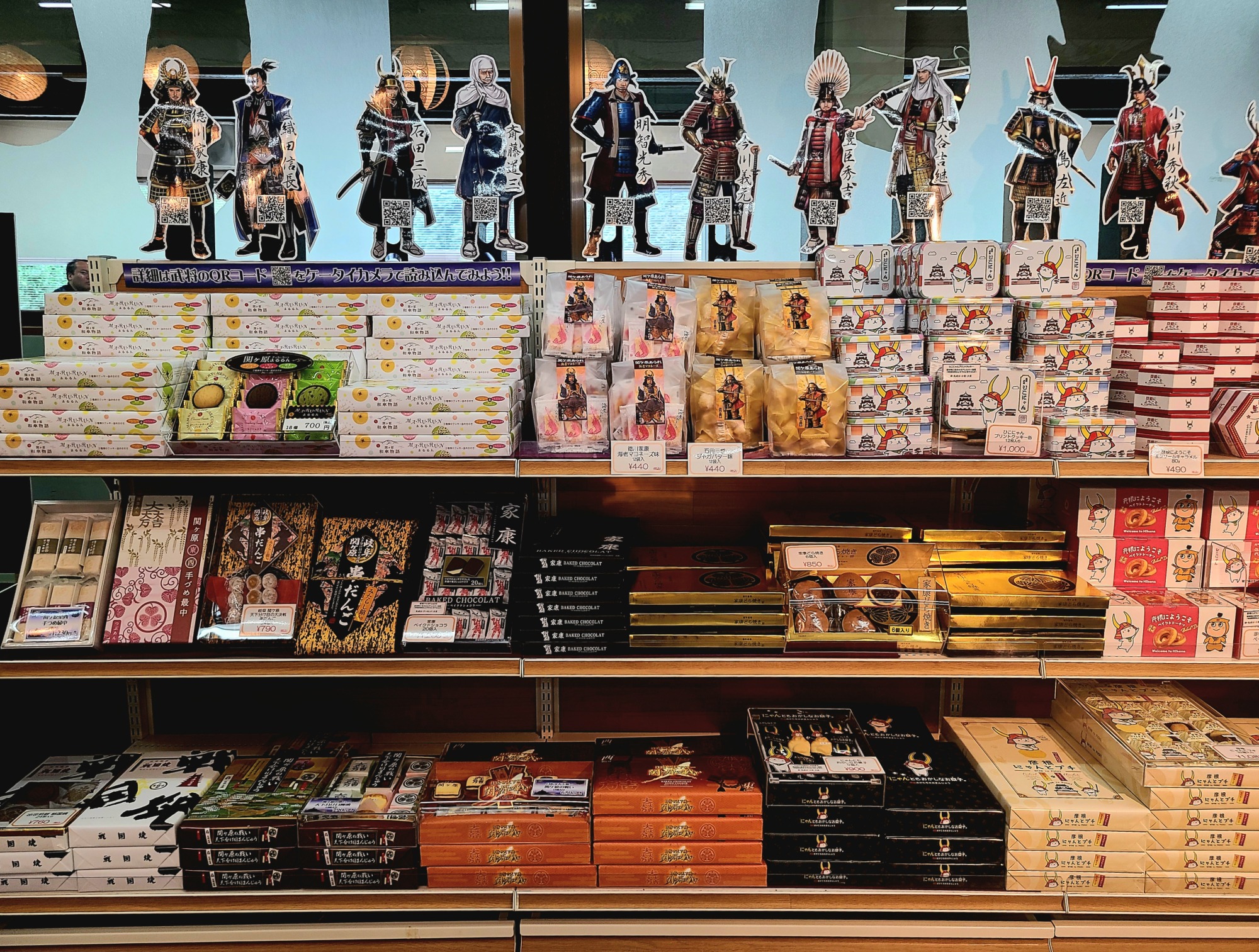 武将や関ケ原合戦にちなんだお菓子類も人気です。ここでしか買えないオリジナル商品もあるのでオススメです。