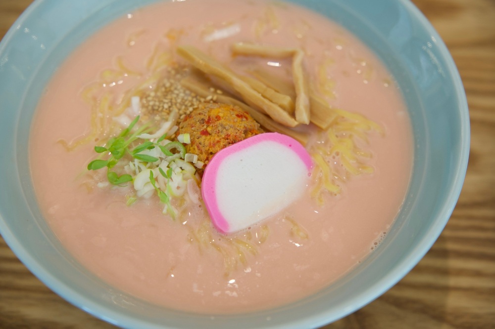 スープが本当にピンク色でしたが、ビックリするほど美味しくて、坦々麺の辛みもしっかりとしていて、食べていて汗が出ました。
