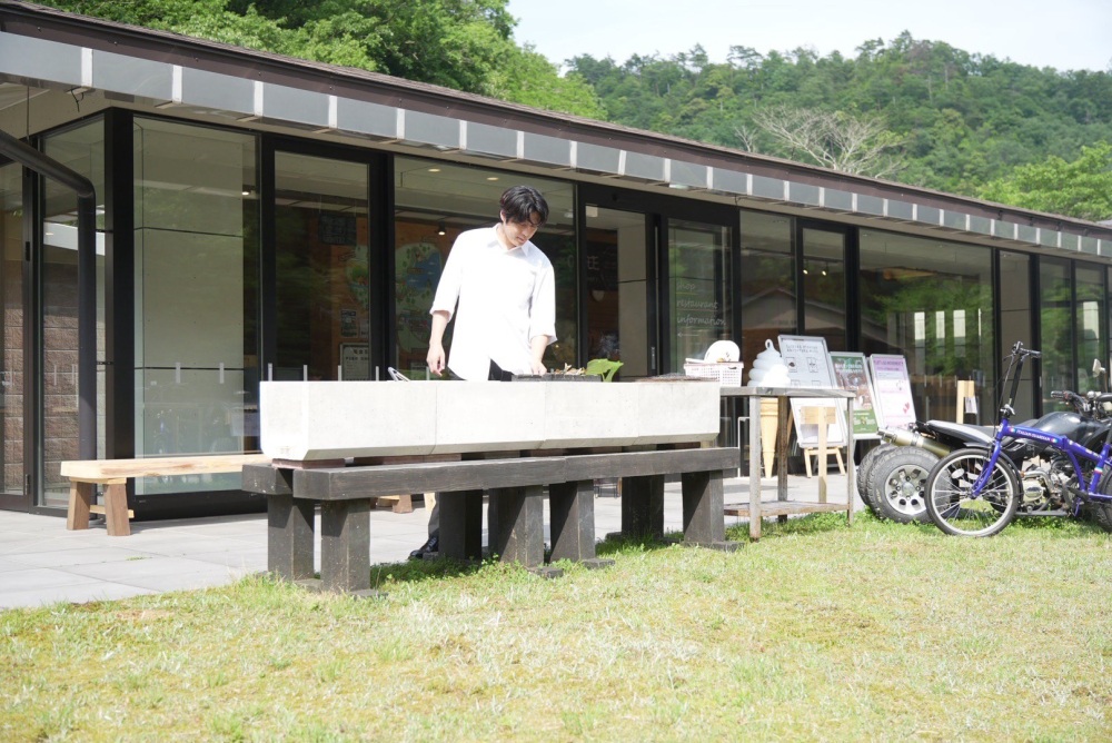 静かな場所なので、鳥の声や風の音がしたり、そんな中でゆっくり食事をつくり、その場で食べる。